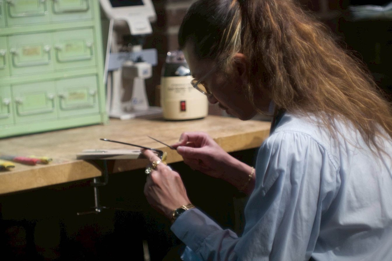 ※数を減らしていたガラスレンズの需要を復活させるなど、技術の継承や再興にも力を入れている。傷と経年劣化に強く、重厚な質感と光沢を放つガラスレンズの魅力を伝えるため、デッドストックのガラスレンズの入手に始まり、大阪のレンズメーカーと協力して再興させた。このほか、金継ぎでのフレーム修理や、継ぎ目のないレザー巻きカスタム、縁無しフレーム用のレンズのための側面ダイヤモンド鏡面加工など、多岐にわたる実験的な試みにも取り組んでいる。