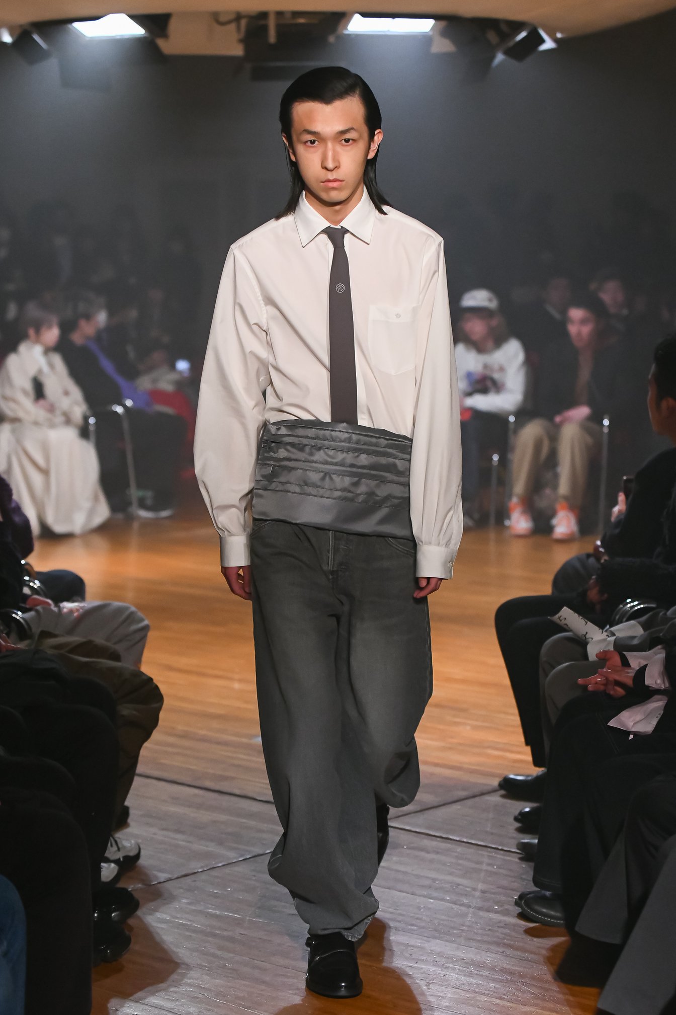 一方で、2022年秋冬コレクションの「All Grown Up」、2023年春夏コレクションの「Drive My Dreams」と2シーズンわたり、それまで度々掲げていた四字熟語のコレクションテーマを止め、販路拡大のためにクリーンなルックで、リアルクローズの落とし所を見つけたようにも見えたが、今回のショーでは、全体を俯瞰して見た時に再びマス向けではない「過剰さ」も見て取れた。しかし、そのどれもが、過剰さとリアルクローズの間で絶妙なバランスを取っている。日本独特の言い回しである「急がば回れ」ではないが、最初からリアルクローズの道を選択せず、2シーズンにわたって提案したリアルさは、ブランドを前へ押し進めるための思惑だったと思わざるを得ない。