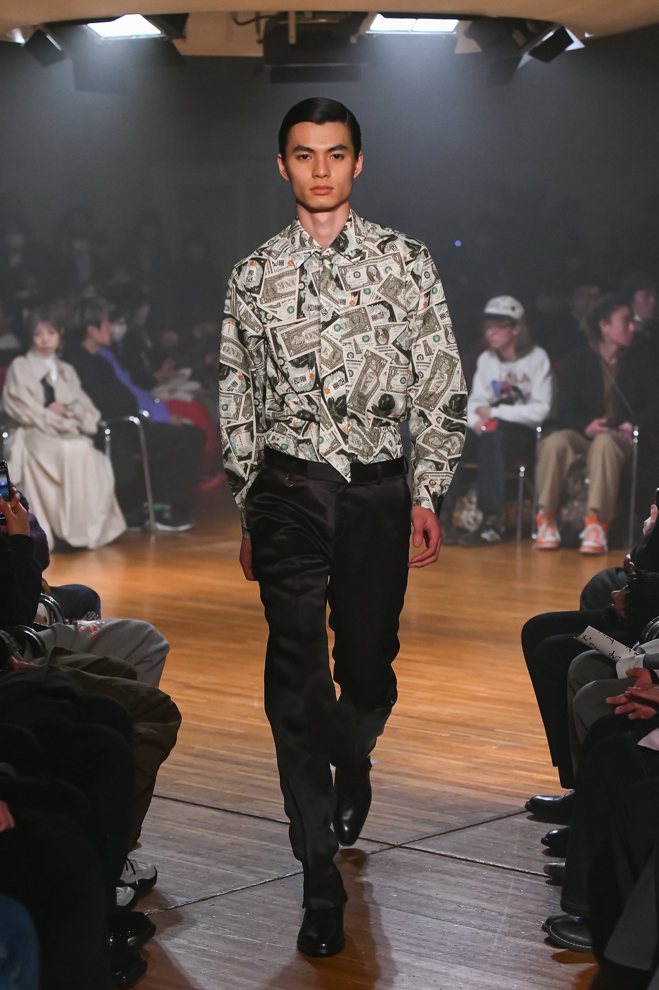 日本におけるシティは、アメリカのニューヨークや、イギリスのロンドン、フランスのパリのような、ファッションキャピタル的な意味合いは薄い。何故なら、日本は元来土着文化であり、戦後日本の都市部に流入した西洋文化こそが、シティ(=東京)であるはずだからだ。アーティスト コウタ オクダ(KOTA OKUDA)とコラボレーションしたシャツには、日本の旧札と100ドル札を模したプリントが施されており、まさしく、戦後日本の土着性と西洋文化が入り混じっていた様(シティ)を思い起こさせる。