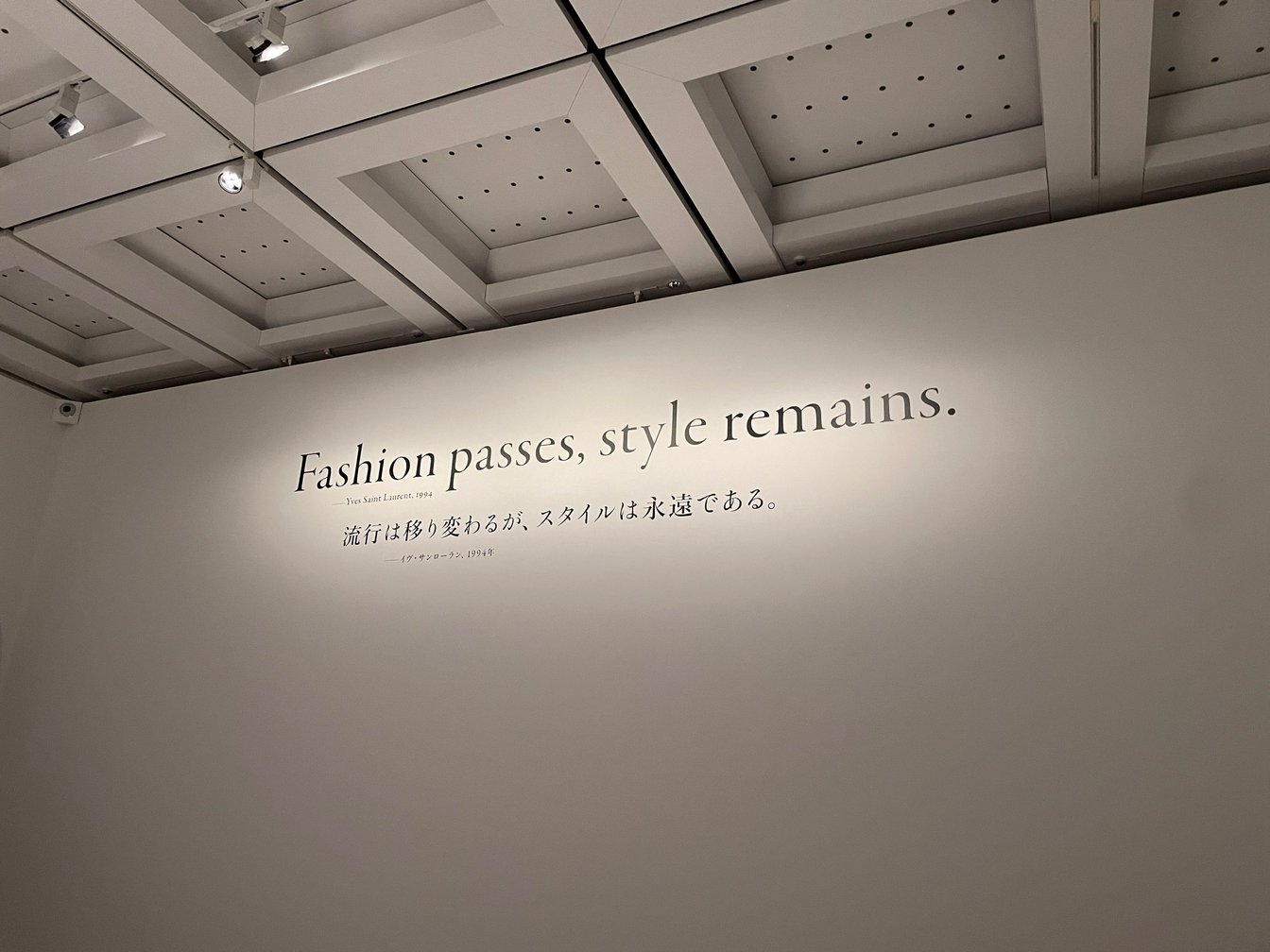 この展覧会の中でサンローランの作り上げた「時を超えるスタイル」を見ることが叶うのは一体誰なのだろうか。少なくともそれを“見る”ためには、私たち自身の中に歴史意識が自覚される必要があり、その意味でサンローランの衣服は今もなお未来へと開かれ続け、私たちに“時を超える=歴史意識に貫かれる”精神の在りかを問いかけ続けるのだろう。