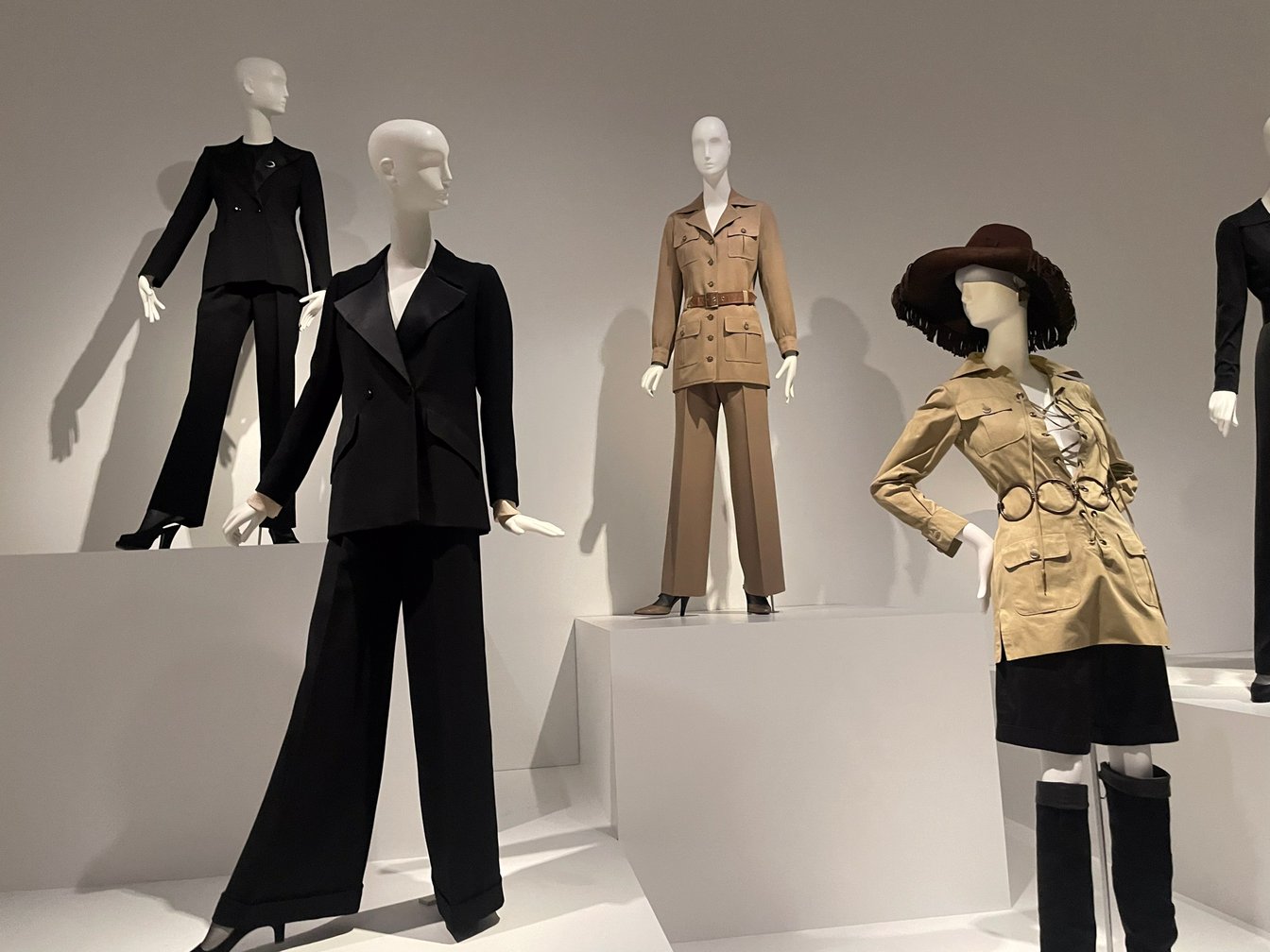 同展には、プレタポルテの衣服が全くの不在であり、当然「リヴ・ゴーシュ」への言及もなかった。当時のサンローランは、リヴ・ゴーシュをオープンさせることでプレタポルテを積極的に展開していき、オートクチュールとプレタポルテの間で、大いに悩み、分裂していただろうと想像する。そうではなくとも、サンローランの中でオートクチュールとプレタポルテが互いにどのように影響したかは、本来回顧展であるならば問うべき事柄だと思う。またブランド運営の観点から見た場合、オートクチュールをやりつつ、いち早くプレタポルテのブティックをオープンさせたサンローランは、時代の危機や歴史的な社会変化に非常に敏感であったことが分かる。なぜなら、オートクチュールとは、フランス政府が法的に保護する特殊な制度だからだ。国と企業と労働組合が連携し拡大成長していくことを目論む意味では、所謂フォーディズム的な形態とも言える。一方プレタポルテは、エネルギー革命の進展により社会の新たな脆弱性が明らかになり始め、産業のフォーディズム的成長が衰退し始める70年代を目前にして出てくる新しい形態である。そのため、フランスのファッション産業の系譜に照らして言えば、表面的にアメリカ由来の大量消費主義としてプレタポルテを見るだけではなく、オートクチュールという制度への批評的な形態としてプレタポルテを捉えるべきであろう。