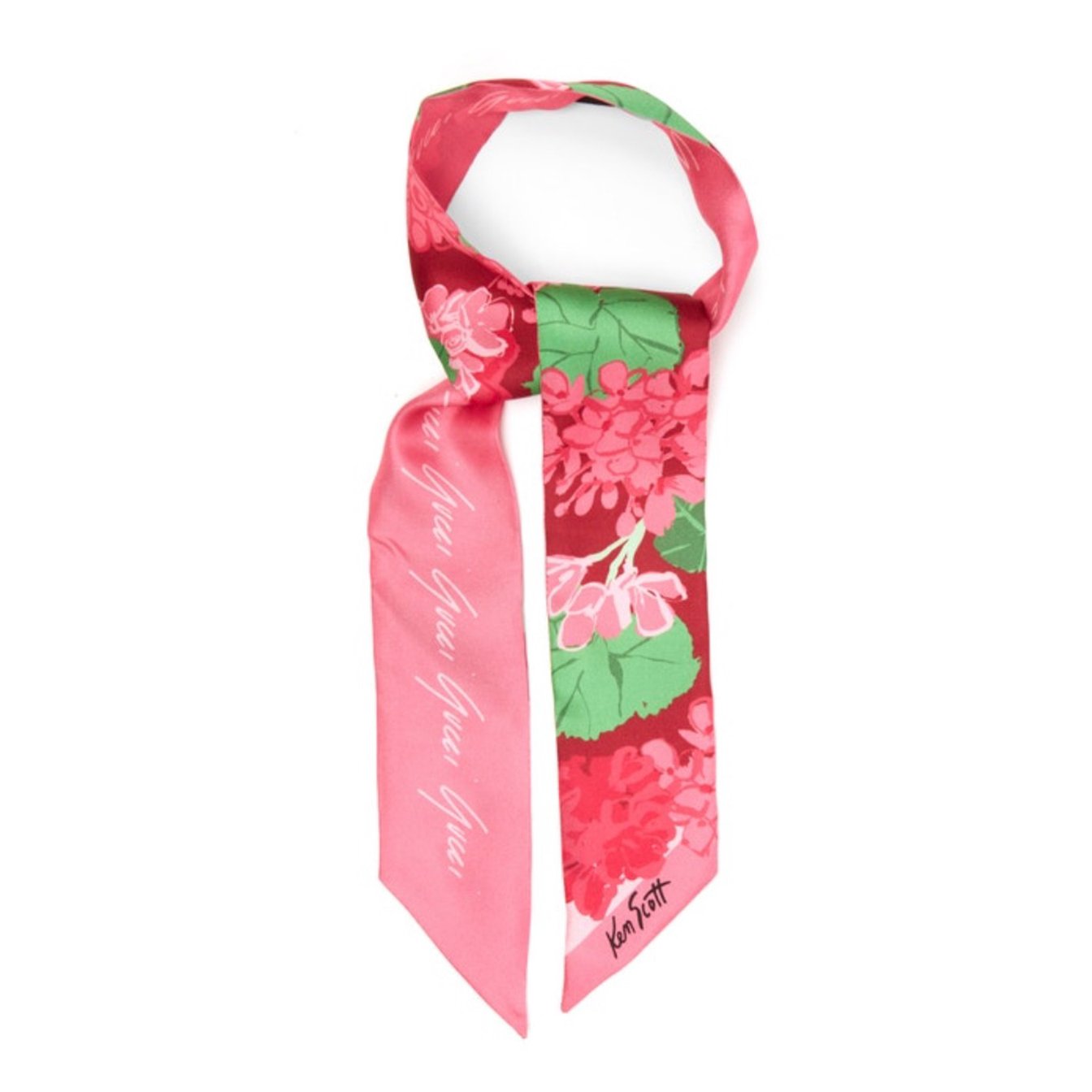今は亡きアメリカ人アーティストKen Scott(ケン・スコット)の作品から着想を得たフローラルパターンが美しい一枚。細身のシルエットなので首元は勿論腕や髪留めにぴったり。スッキリとしたシルエットで個性を主張する上質なスカーフです。