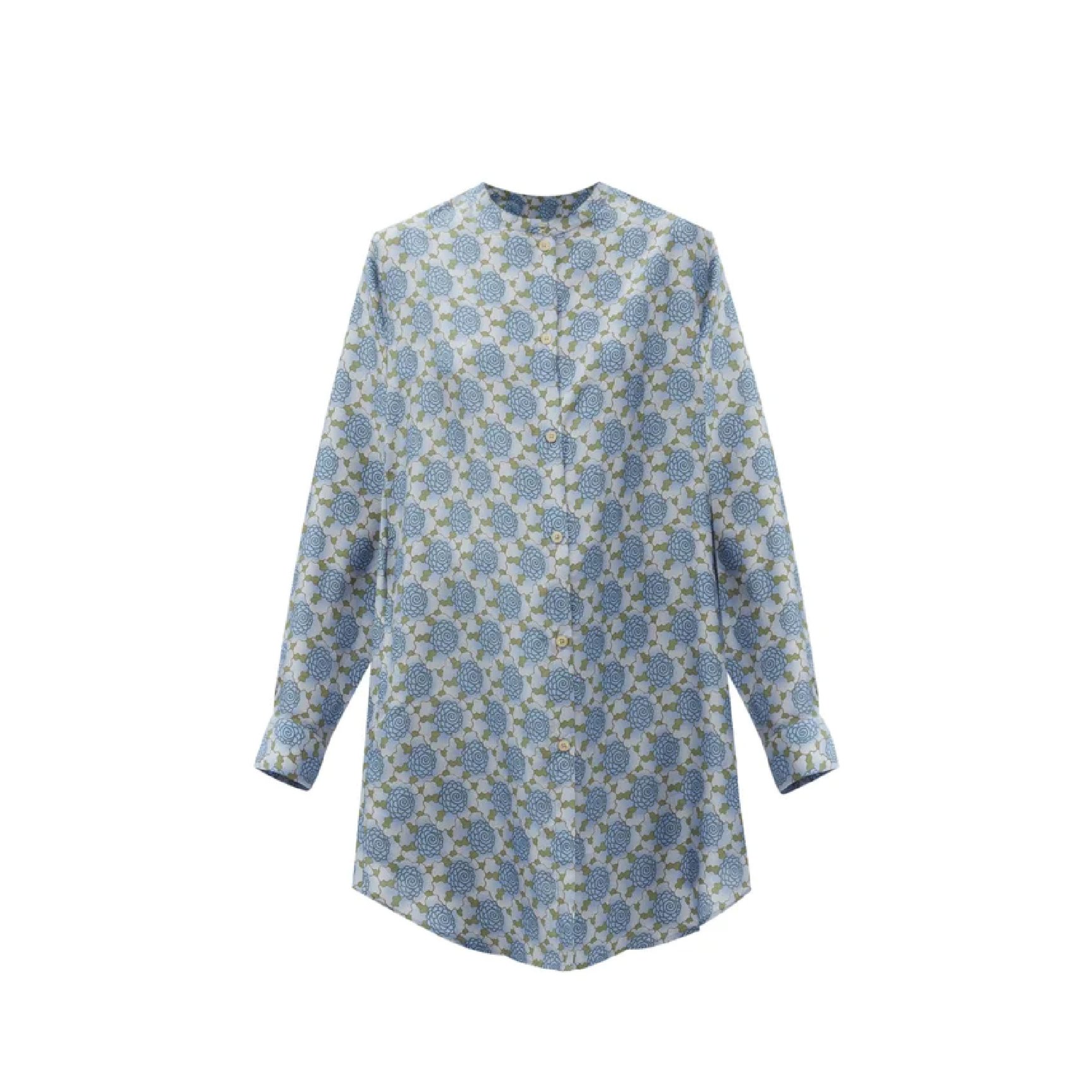 ピオニーパターンがあしらわれ、アンティークなムード漂う「バイ・ワリッド(By Walid)」のシャツ。ロングラインなシルエットパウダーブルーのシルクジョーゼットを使用し、コンフォートな着心地です。