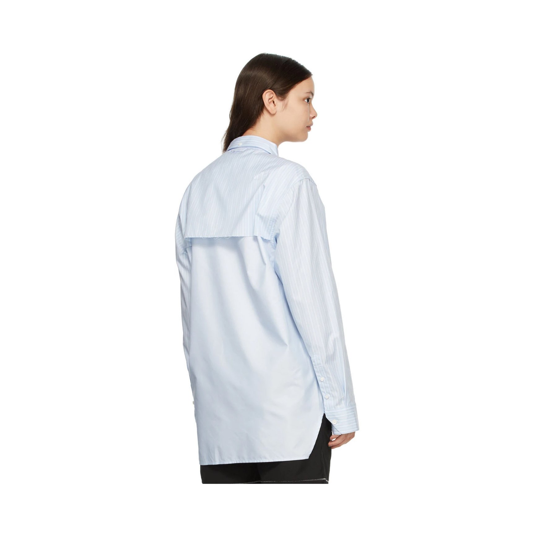 韓国のソウルで 2014年に結成された匿名のデザイン集団「アーダーエラー(ADER ERROR)」によるブルーストライプシャツ。レイヤード仕立てのデザインに、背面にはホワイトのグラフィック刺繍を施し、上品な印象ながらも個性的な一着です。