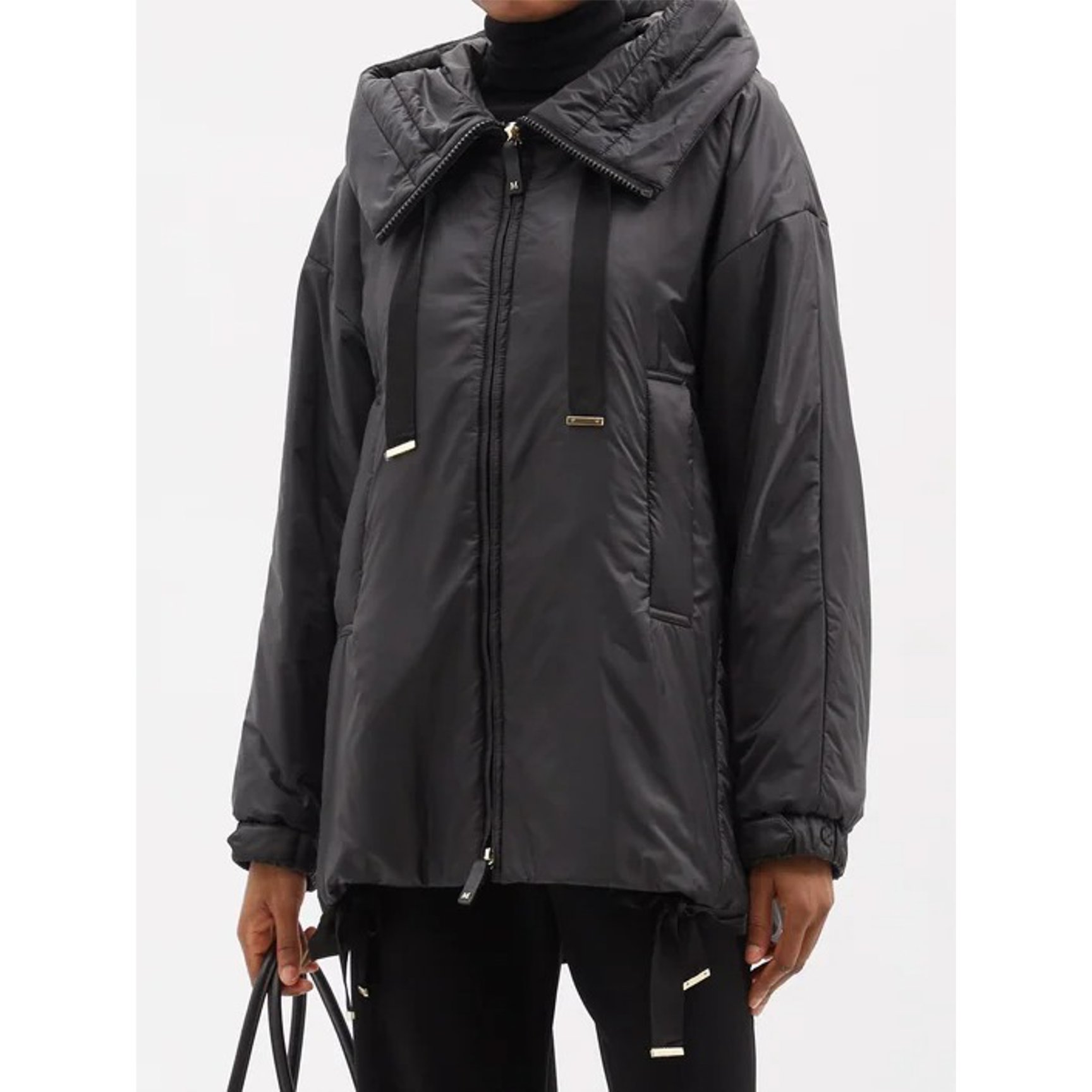 グラマラスなファンネルネックフードがアクセントになった、「マックスマーラ(Max Mara)」のアウタージャケット。アクティブなナイロン素材に、レディなディテールをプラスしたエレガントな一着です。キャメルコートの余り生地をアップサイクルした、CameLuxeを中綿に採用しています。