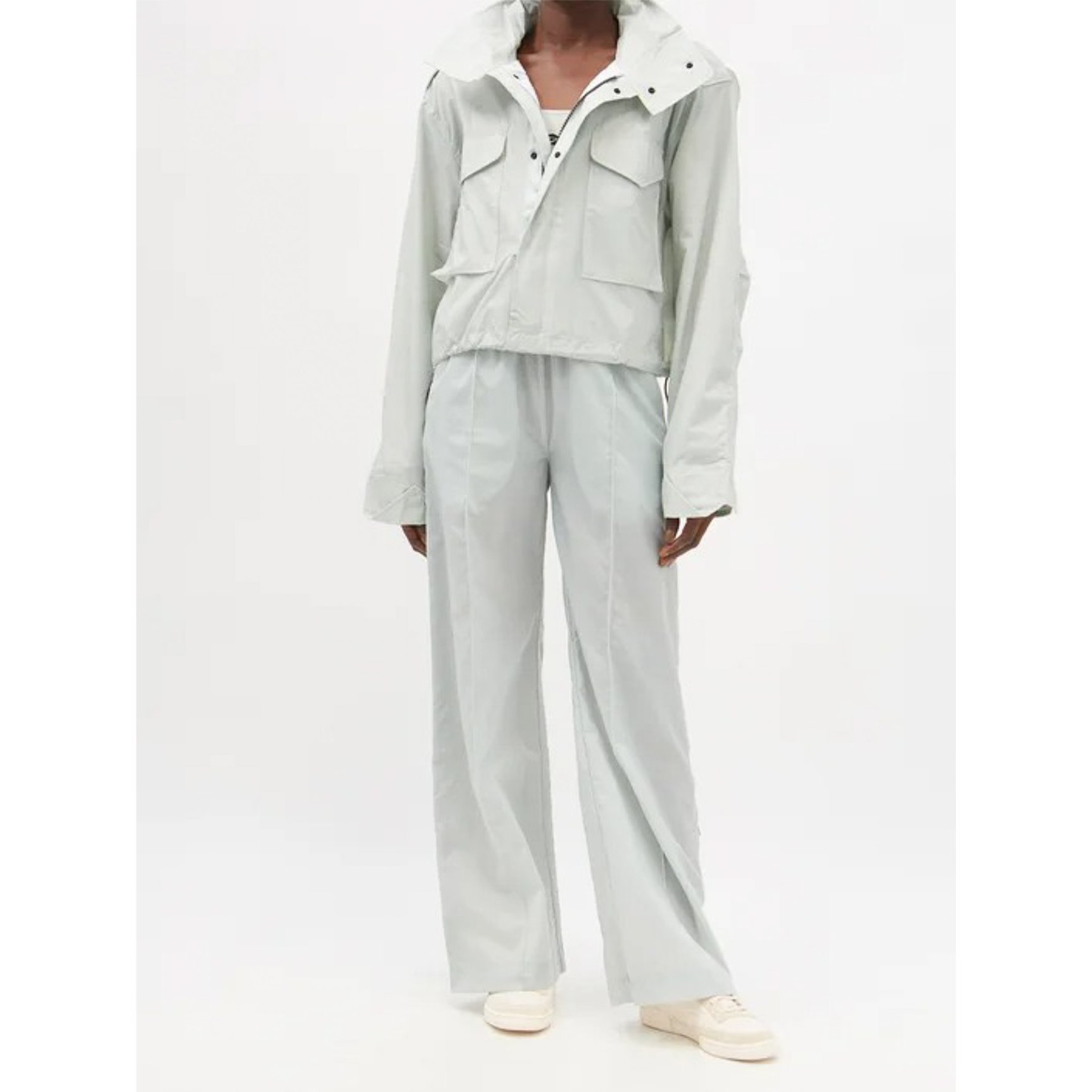 アクティブウェアながら、エレガントなムードを放つ「リーボック(Reebok)×ヴィクトリア・ベッカム(Victoria Beckham)」のクロップドナイロンジャケット。リュクスなハイトーングレーが、スポーツにもレディなスタイルにもマッチ。ハイネックには、収納可能なフードが隠されています。