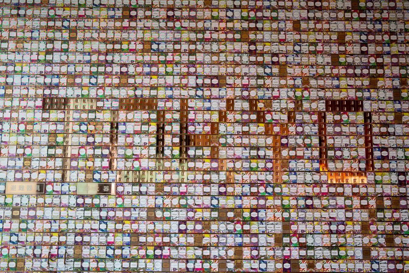 2階から3階へと進む階段の壁一面は、コーヒーの名称が書かれたカラフルなカードで装飾。よく見ると「TOKYO」の文字が浮かび上がっています。