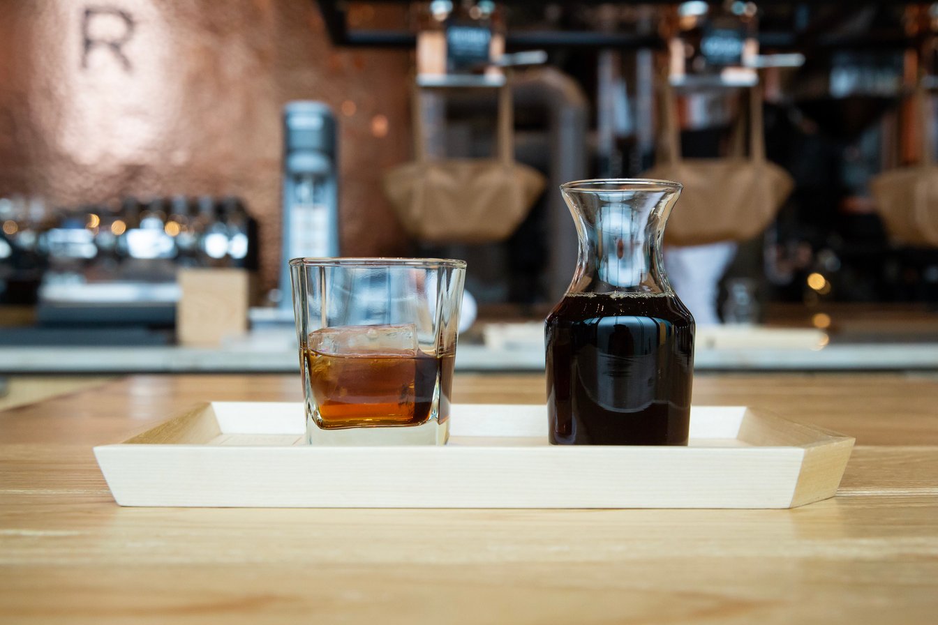 目玉となるメニューは、バーボンウイスキーの樽の中で熟成させたコーヒー豆をコールドブリューで抽出した「バレルエイジド コールド ブリュー」。お値段はなんと、一杯1200円!