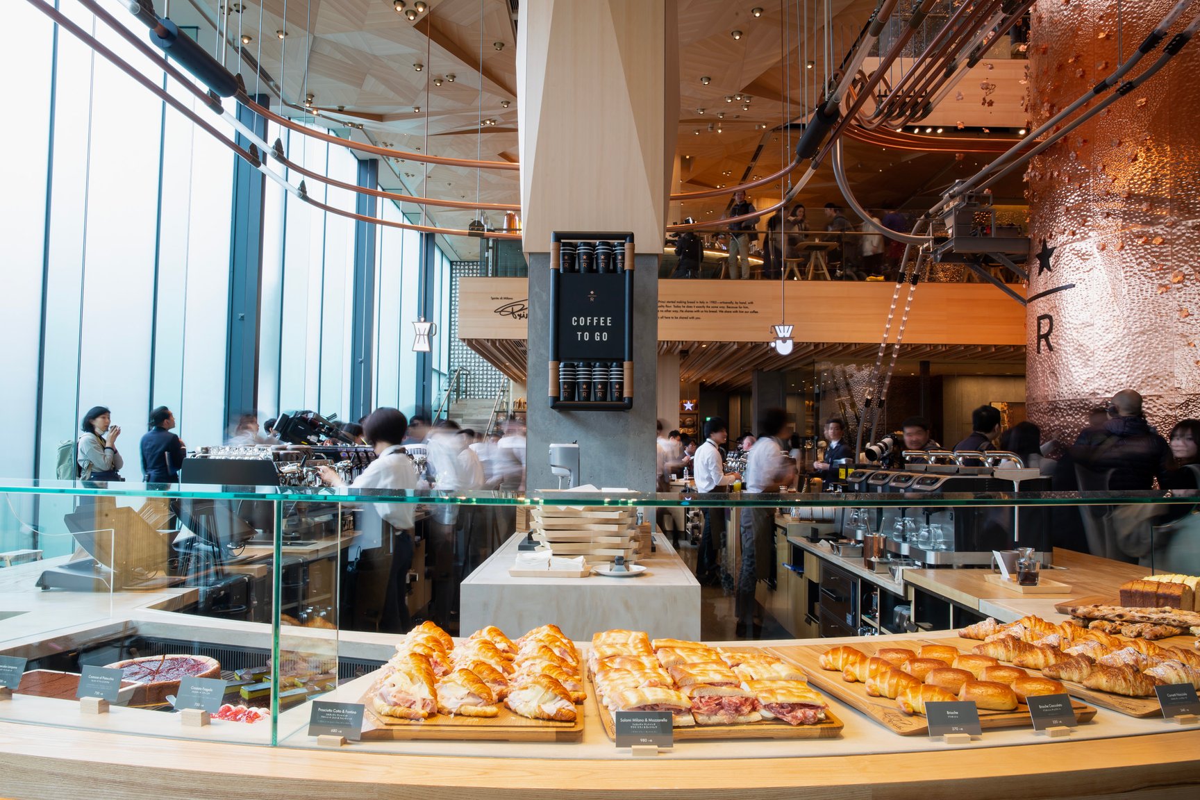 メインバーでは「スターバックス リザーブ®」のコーヒーによるビバレッジを提供。日本初上陸となるイタリアンベーカリー「プリンチ®」のメニューの中から、コーヒーに合うパンやスイーツを一緒に販売しています。フードメニューは時間帯に合わせて異なるラインナップが展開されます。