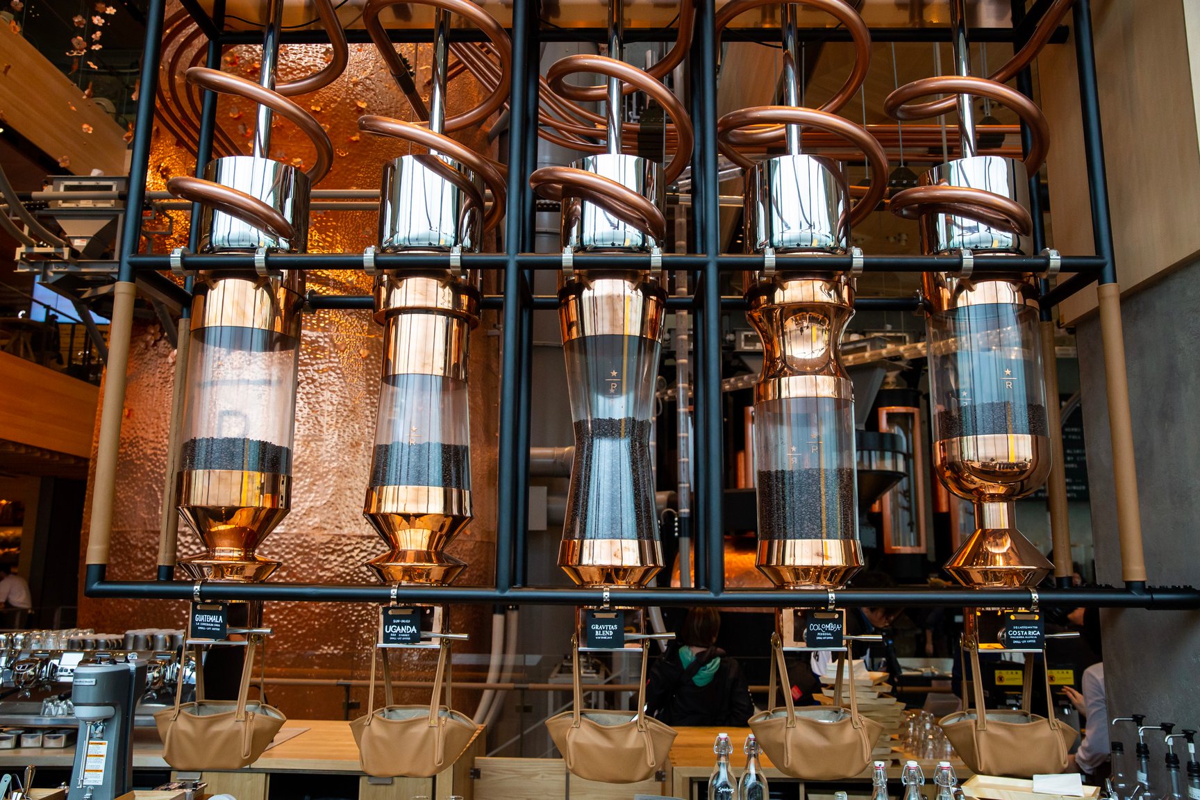 シアトル、上海、ミラノ、ニューヨークに続く世界5番目のロースタリーを併設した新コンセプトストア「スターバックス リザーブ® ロースタリー(Starbucks Reserve Roastery)」が、中目黒エリアに誕生しました。ここでしか味わえないビバレッジやフード、限定デザインのオリジナル雑貨を豊富に取り揃え、世界中から調達した希少性の高いコーヒー豆の焙煎や抽出の様子を間近で見られるなどコーヒー好きにはたまらないストアです。建築デザインやインテリアにも注目が集まる「スターバックス リザーブ® ロースタリー 東京」の魅力をフロアごとに紹介します。