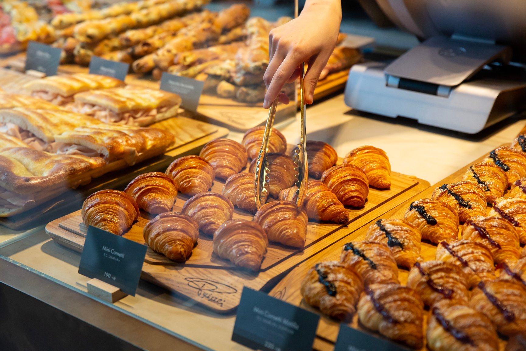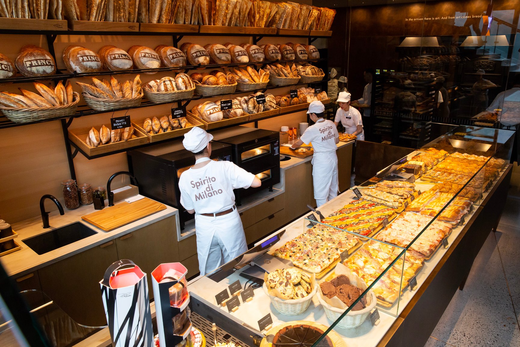 フロアの奥ではコルネッティやフォカッチャ、ピッツァなど「プリンチ®」のメニューを焼きたてで提供。タルトやティラミス、プリンチーナといった見た目の美しい手作りスイーツも豊富です。