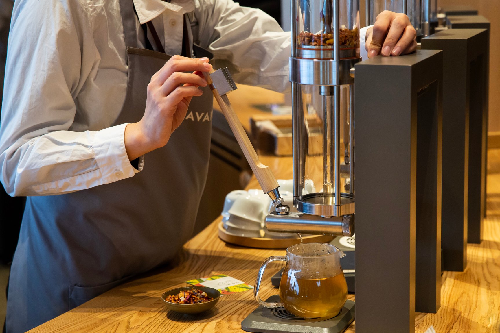 「ティバーナ™️」は、スターバックス コーヒーの紅茶ブランドで、2016年に日本に上陸。このフロアではティービバレッジやデザートに加え、茶葉を販売しています。