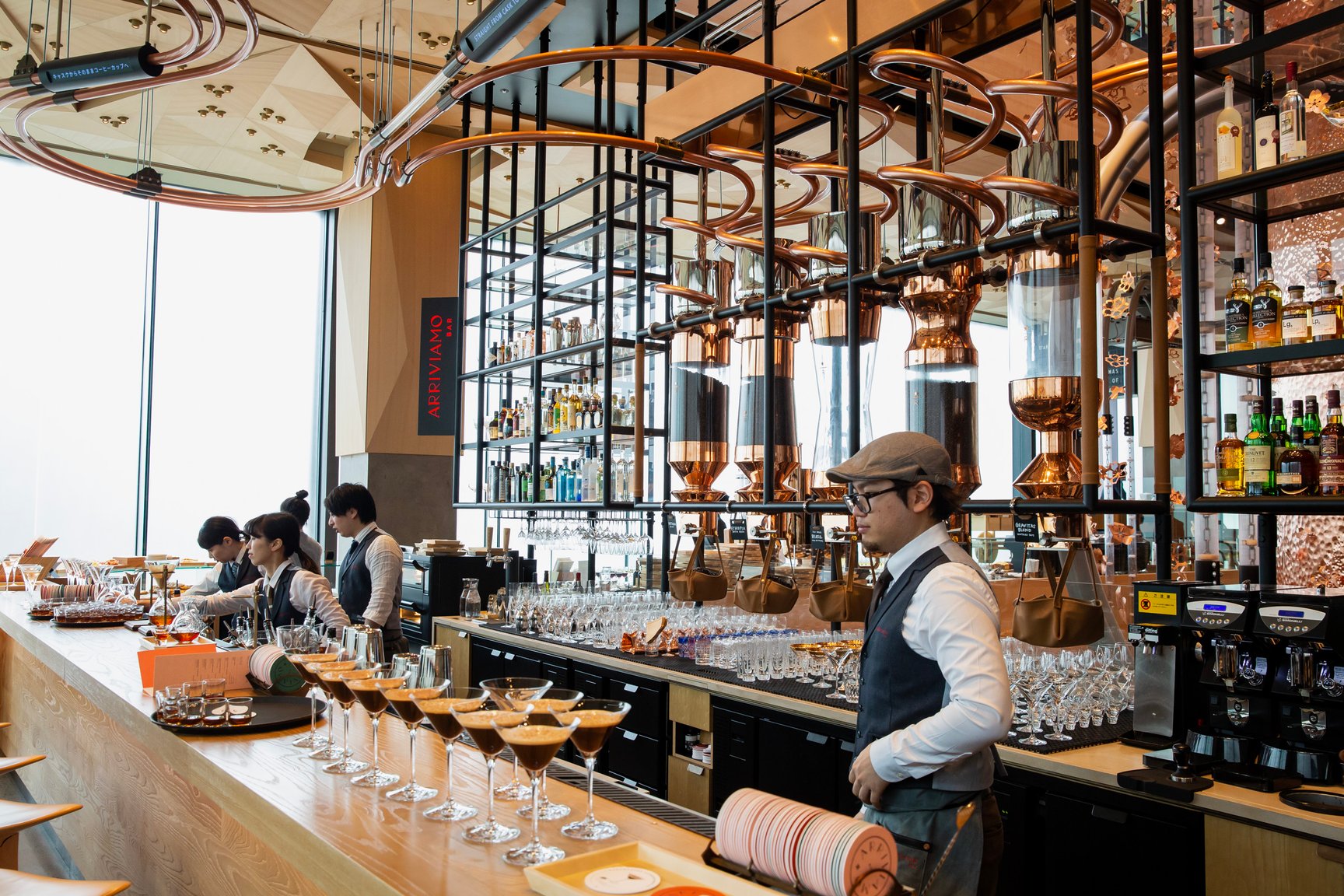 日本初上陸となるカクテルバー「アリビアーモ™️ バー」では、アルコールメニューを中心に提供。バーテンダーの経験を持つパートナー(従業員)も働いており、オーソドックスなカクテルからコーヒーやティーを使ったユニークなメニューまで様々なお酒が楽しめます。