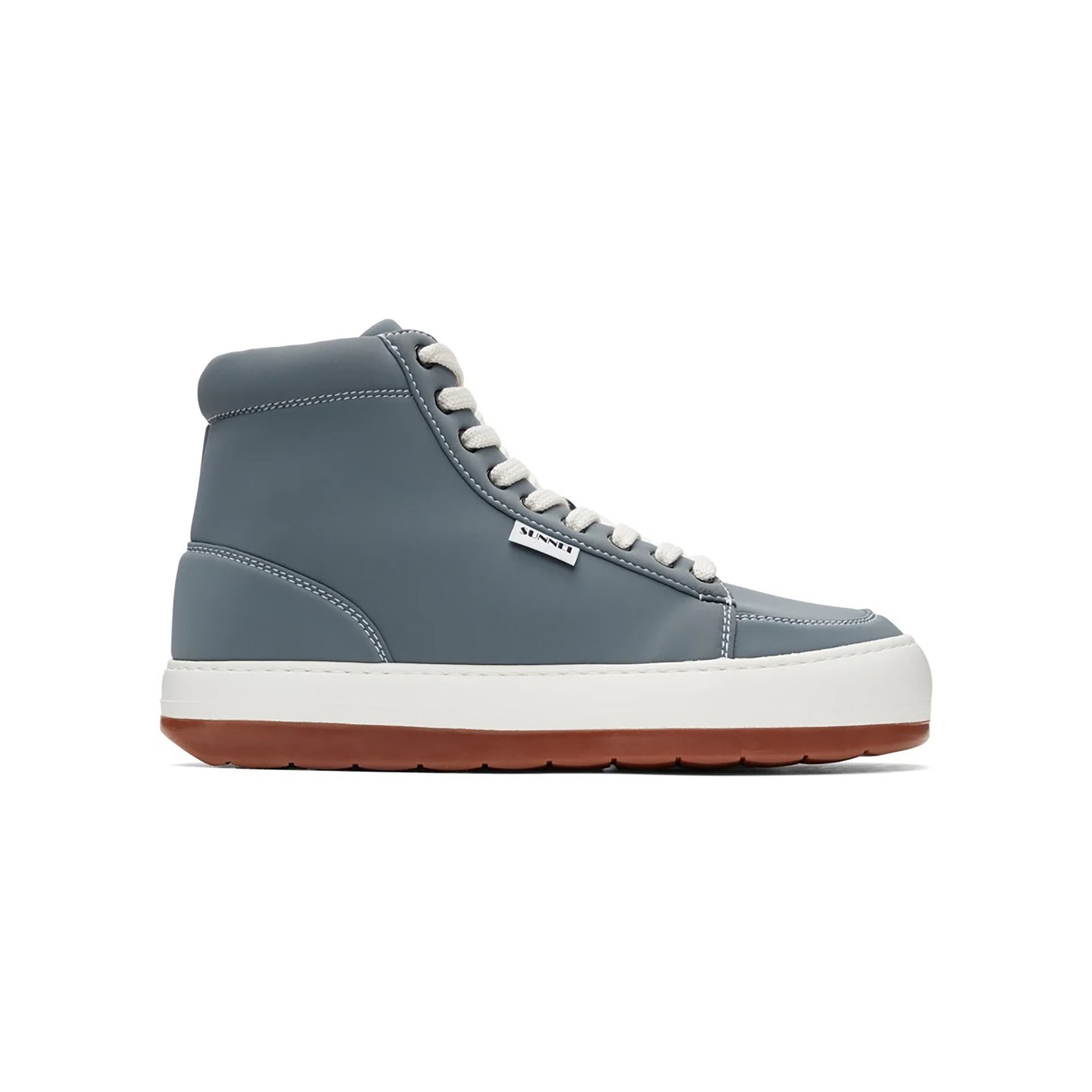 「スンネイ(SUNNEI)」のスチールグレーカラーのハイカットのスニーカーは、デニムとの相性も抜群。ネオプレン素材特有のぽってりとしたボリュームが、シンプルなディテールを更に引き立ててくれます。