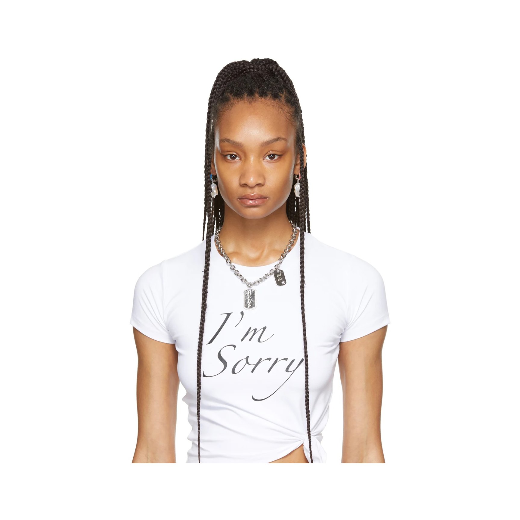 ガーリーな世界観で人気を博すフォトグラファーでありスタイルアイコンでもあるペトラ・コリンズ(Petra Collins)によるSSENSE限定コレクションが「アイムソーリー バイ ペトラ コリンズ(I’m Sorry by Petra Collins)」。注目のアクセサリーブランド「ジウィナイア(Jiwinaia)」とのコラボピアスは、シグネチャーアイテムであるバロックパールピアスになんとゴキブリ(!)を描かれています。イミテーションオパールのカラフルなきらめきとのアンバランスさがなんとも絶妙です。