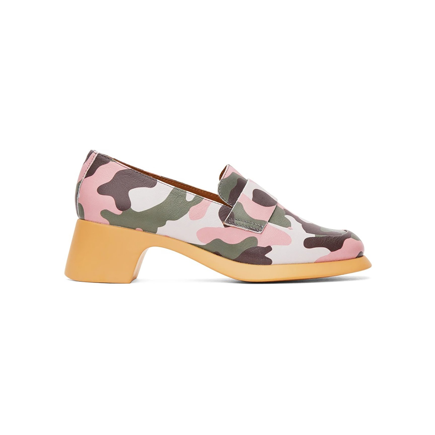 続いて、こちらは「カンペール(CAMPER)」とのコラボローファー。ピンクトーンのカモパターンは足元をぱっと華やかにしてくれそう。角度のついたブロックヒールもキュートな雰囲気をプラスしてくれます。