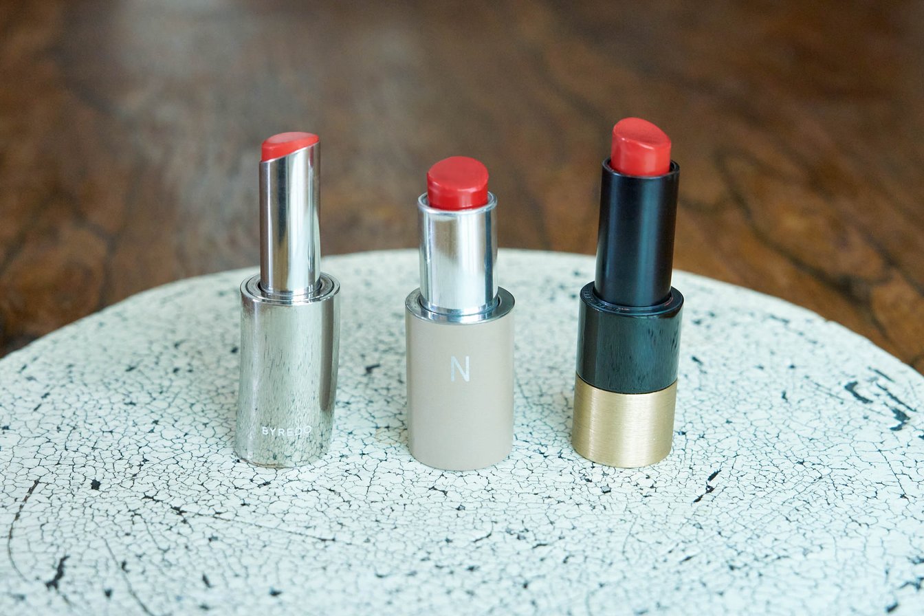 左から、バイレード「リップスティック サテン」(9295円)、ラ ブーシュ ルージュ「リップリフィル」(4840円 ※レザーケース別売)、エルメス「ルージュ エルメス」(9240円)