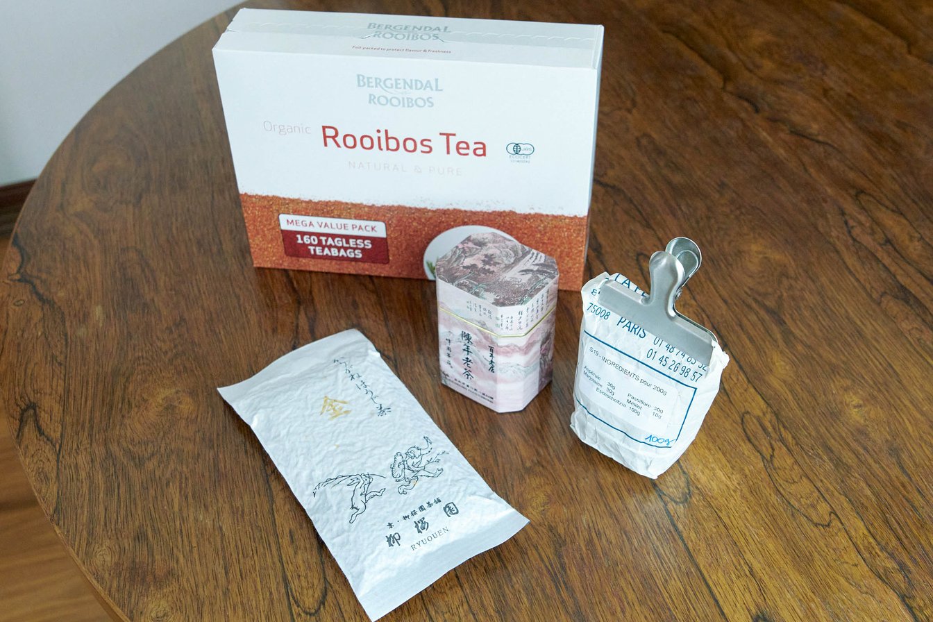 独特の風味のあるお茶が大好きなんです。ルイボスティーは妊娠したタイミングで飲み始めて、もう10年以上になります。ティーパックを入れっぱなしでも苦味が出ないので、いつもタンブラーに入れてホットで持ち歩いています。成城石井で入手できる「バーゲンダル」の味が好きで、ストックを欠かしたことはないです。