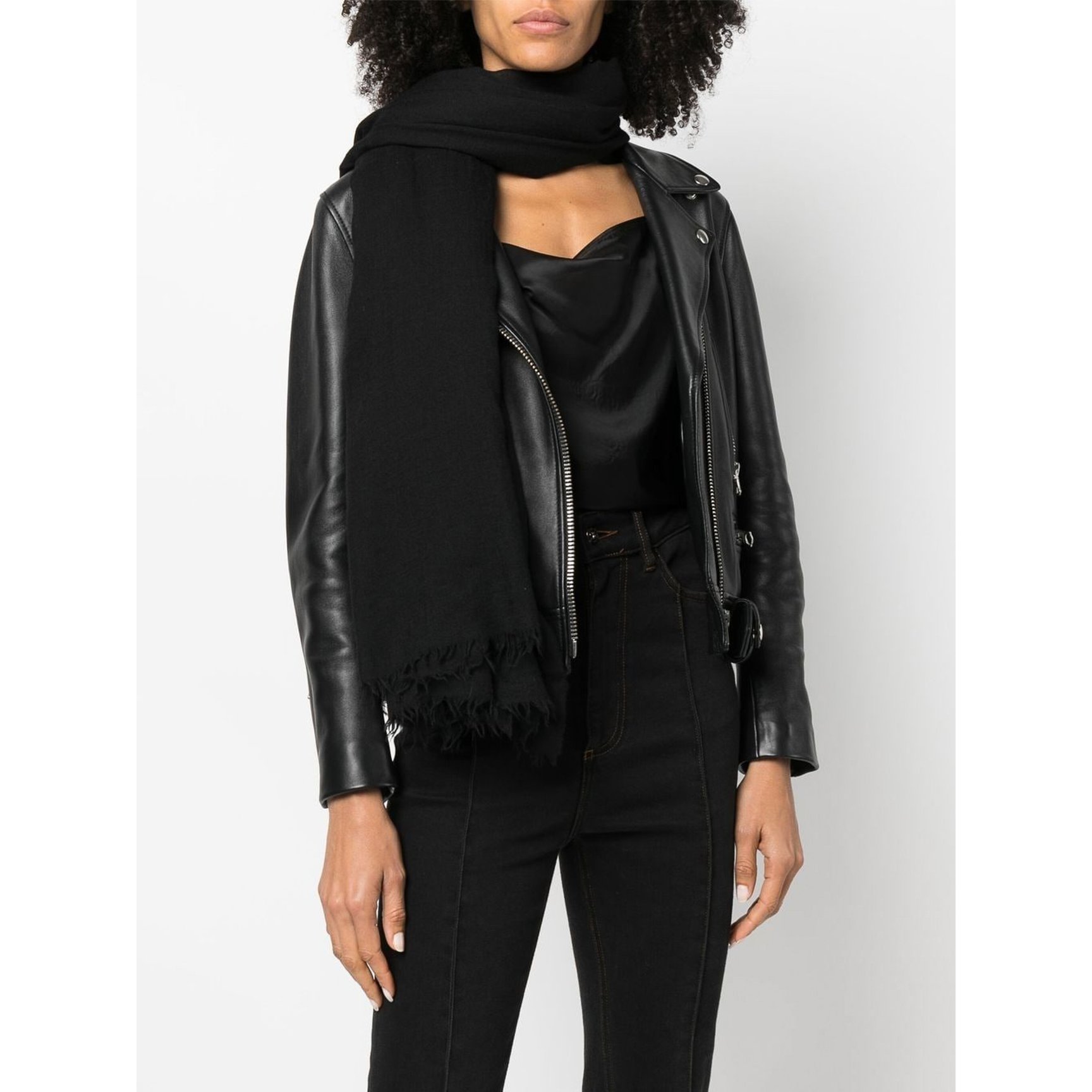 ブラック一色で魅せる、「リック・オウエンス(Rick Owens)」のファインニットストール。ウールにシルクとカシミヤを混ぜたこだわりの素材が、極上の着用感とワンランク上のオーラを纏う、清くハンサムなアイテムです。