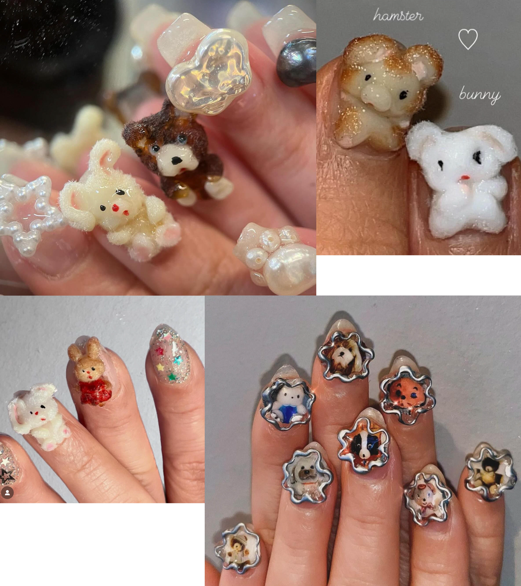 ⎯⎯ NewJeansが着用したネイルチップにも採用された3Dの動物ネイルは、人形のような質感も独特です。