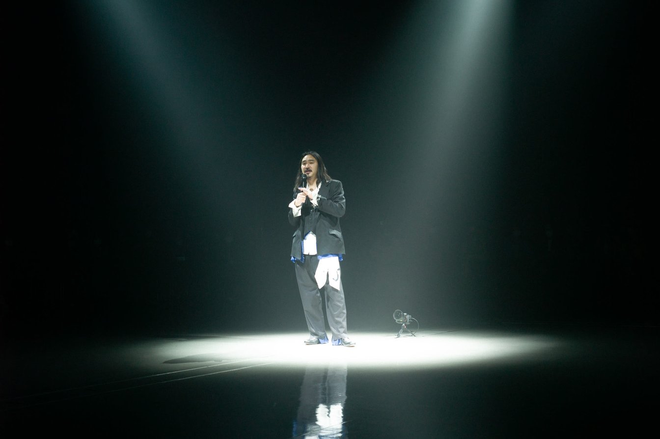 ショーの最後には、藤田が会場中央に登場し、東京でのショーを遂行した理由を、自らの言葉で丁寧に説明。特に「開催を決めた唯一の理由は、次の時代を担う学生や子どもたちに見て欲しかったため。こんな時代でも、前を向いて進むことの重要さを伝えたかった」と語った。(文責:村上杏理)