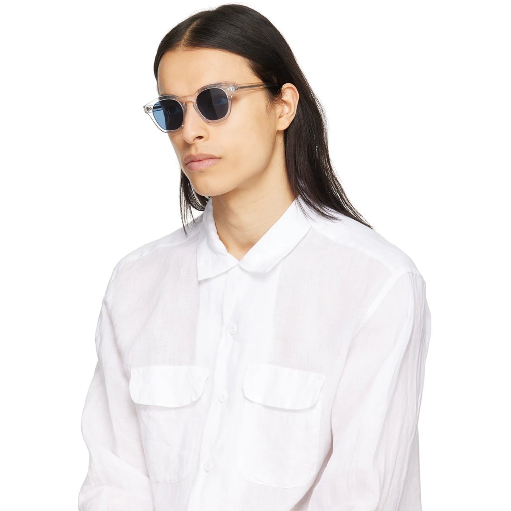 最後にご紹介するのは、ブルーのミラーレンズが爽やかに光る「オリバーピープルズ(OLIVER PEOPLES)」のサングラス。計算されたクリアフレームは肌馴染みもよく、軽い付け心地。アウトドアやレジャーにもぴったりのアイテムです。