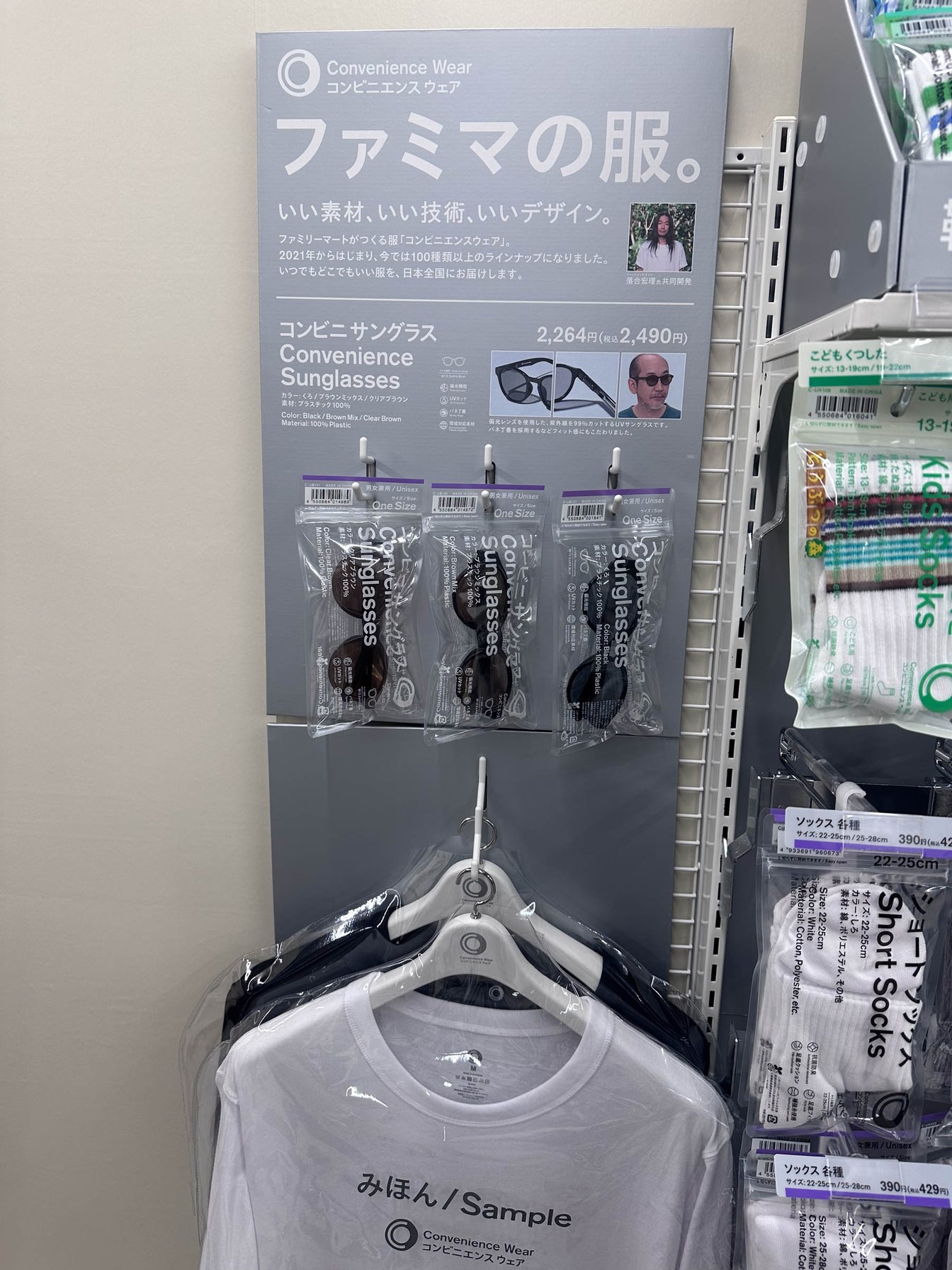 2490円という手に取りやすい価格もヒットの要因のひとつ。伊藤忠商事傘下であり、全国に1万6000店以上を展開するファミリーマートだからこそ実現できる価格と品質のバランスもコンビニエンスウェアの特徴だ。サングラスをはじめ、靴下やタオル、傘など、各種専業メーカーと共同開発し、高いコストパフォーマンスを実現している。コンビニエンスウェアは今年でブランド立ち上げから5周年を迎えたが、年々人気は高まっており、当初は1台だった什器を現在3.5台にまで拡大。より幅広い商品ラインナップの展開が可能になった。消費者からはサングラスの定番デザインの一つであるスクエアを求める声も多いことから、7月には新型のスクエアサングラスを発売する。今後も「ベーシック」を起点にデザインバリエーションの追加を検討しているという。