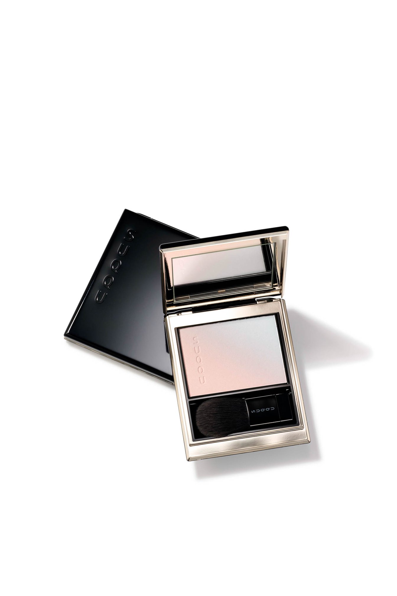 2色をグラデーション使いできるハイライターの限定色は、カラーパールが血色感を与えるピンクと、 シルバーパールを配合したブルーのダブルハイライト処方で、頬にツヤが宿ります。フェイスカラーに重ねて使えば、顔色を引き立てる洗練さを演出できます。