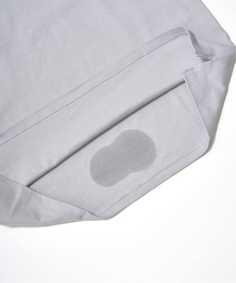 汗染み防止Tシャツとは、一般的に表地に撥水加工、裏地に吸水加工を施すことで汗が染み出すのを防ぐ衣類のこと。エディフィスの広報担当の桂大地氏は「撥水と吸水加工によって、生地を3層にし、生地の中間で汗を止めるイメージ」とそのメカニズムについて説明した。一般的に、撥水加工が施された生地にはシルケット加工※を施すことができないため、一定の品質を保つには生地本来のクオリティが求められる。かつ、汗染みを防止する加工は生地が薄ければ薄いほど難しいとされており、加工の程度や生地との相性の調整は必須だ。各社は、一定のクオリティと機能性を保ちながら、コストを抑える企業努力を重ねている。