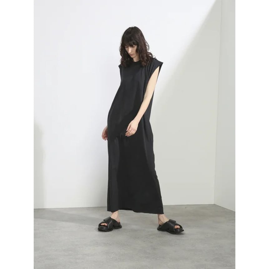 エフォートレスなアイテムに定評のある「レイ(RAEY)」から、ブラックのマキシ丈ワンピースをご紹介。環境に優しく肌触りもいいリサイクル素材を用い、幅広のアームホールと控えめなサイドスリップポケットを配したリラックスムード溢れるワンピースです。