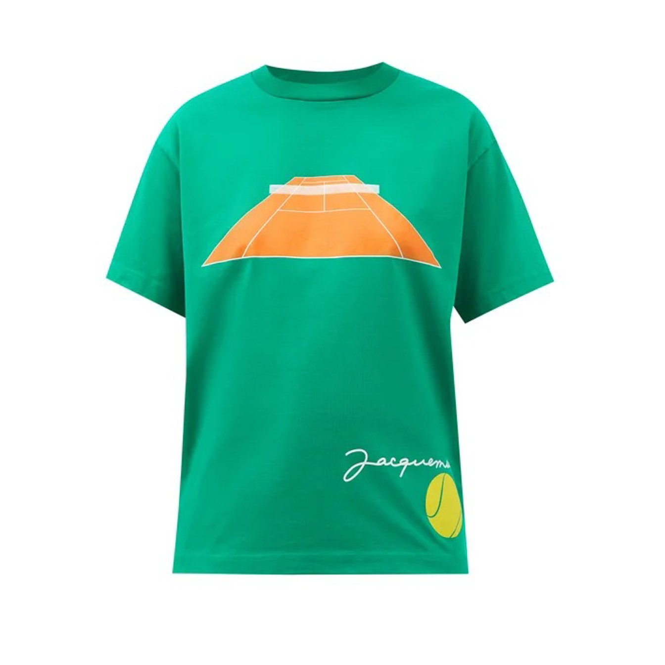 最後にご紹介するのは、Tシャツのボディ全体にテニスの魅力が大胆にデザインされた「ジャックムス(JACQUEMUS)」のアイテム。鮮やかなグリーンが眩しい陽射しに良く似合う、大人の遊び心を満たすユニークな一枚です。