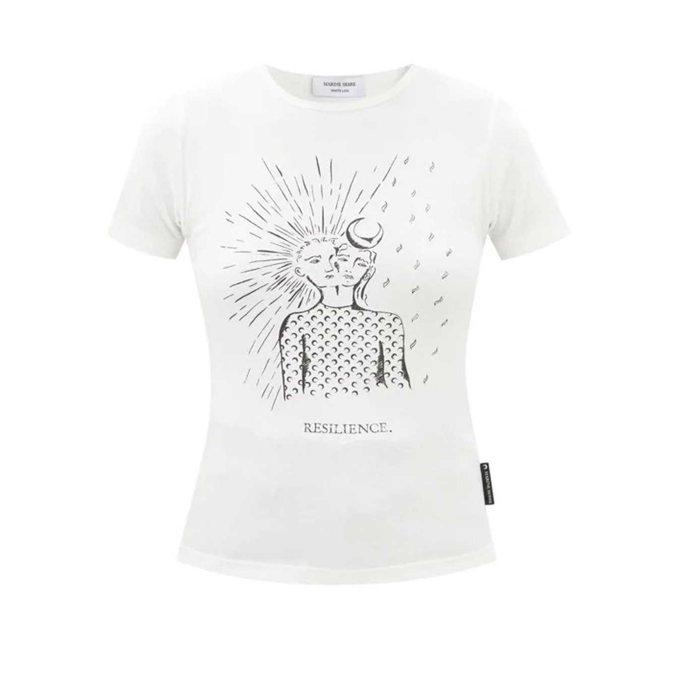 繊細なタッチで描かれた、「マリーン・セル(MARINE SERRE)」のTシャツ。神秘的なグラフィックには、"立ち直ることができる / 問題を解決し乗り越えられる"との指針を示す、タロットカードの"Resilience"がメッセージとして込められています。
