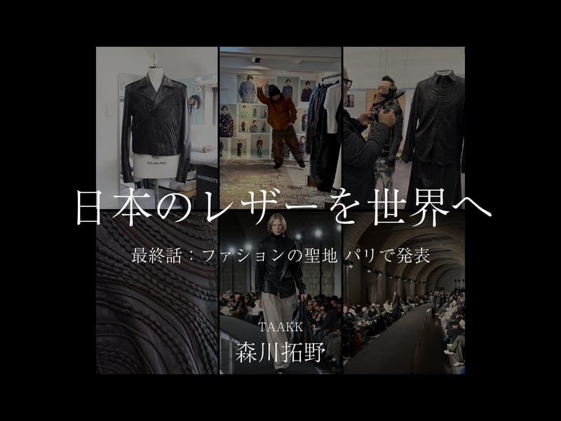 日本のものづくりを世界へ発信する全3回の連載企画。本企画では、国内生産レザーを用いたアイテムを製作し、ファッションの本場・欧州など世界に向けて発表するプロジェクトに密着する。起用されたのは、パリファッションウィークの公式スケジュールで発表を続けるファッションブランド「ターク(TAAKK)」のデザイナー森川拓野だ。