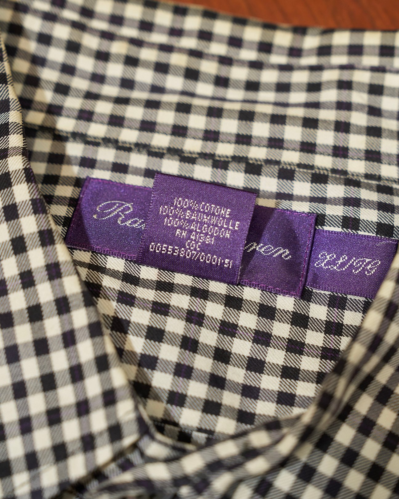 ラルフ ローレンの公式サイトを見ると、「クラシックフィット」「スリムフィット」「カスタムフィット」「テーラードフィット」といったサイズ表記で展開されている商品が存在します。これらは各アイテムの型を表すもので、年代によってはタグと並列されていることもあるため、この情報からも年代を推測することができます。しかし、このような型は細かいものも含めると100ほどは存在しているため、型ごとに年代を分けることはできないそう。ただ、これらのサイズ表記がタグについているのは1990年代初めからなので、サイズ表記があったらその年代以降のものだと思っていいとのこと。