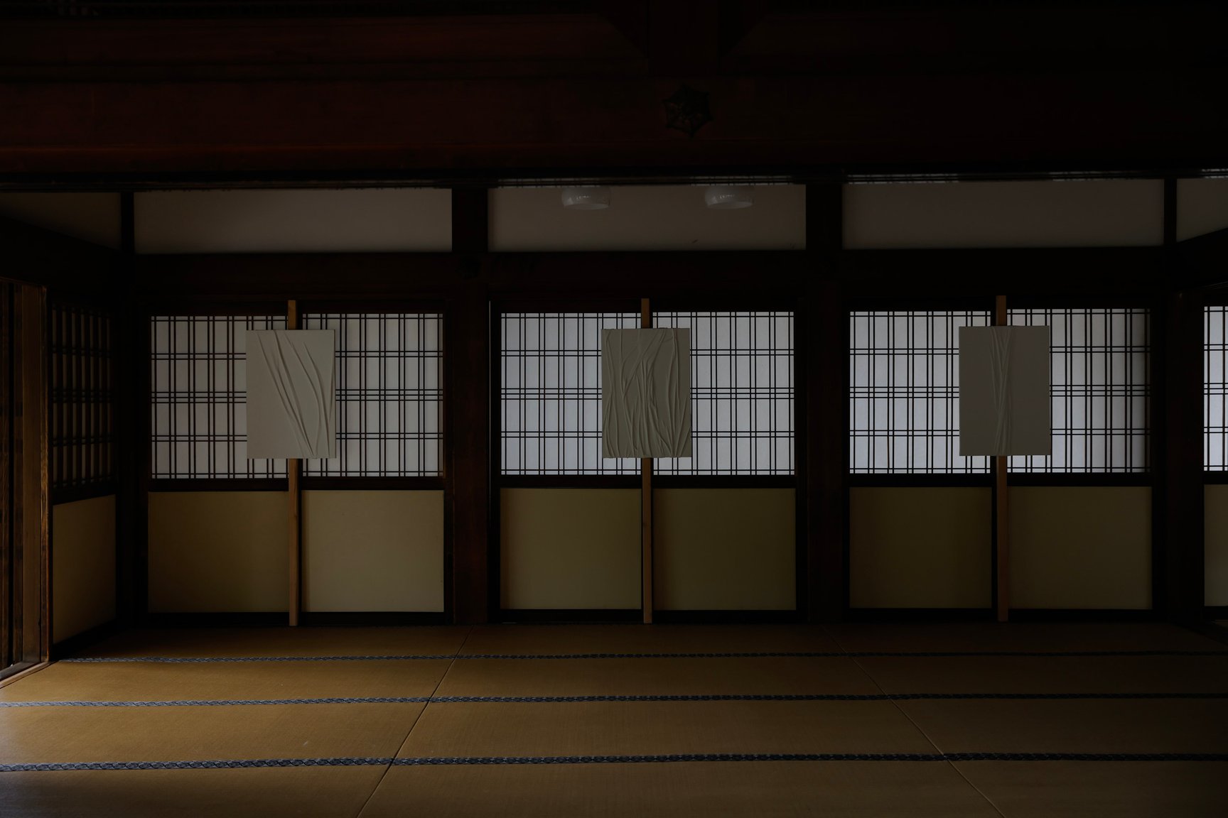 「応用考古学」と髙橋自身が称した表現技法は死後、タイガ タカハシのチームメンバーによって受け継がれる。遺作となる展覧会「不在のなかの存在」の舞台となる両足院は、臨済宗建仁寺派の塔頭寺院で、起源である「知恩院」の創建は室町時代(1358年)。京都府の名勝庭園に指定されている藪内流5代目 竹心紹智(1678〜1745年)が作庭した池泉回遊式庭園を有する寺院としても親しまれている。
