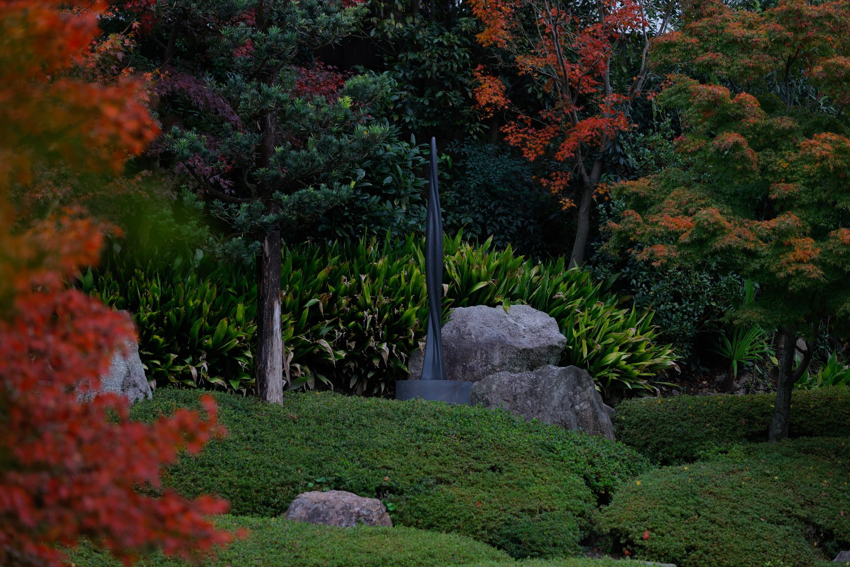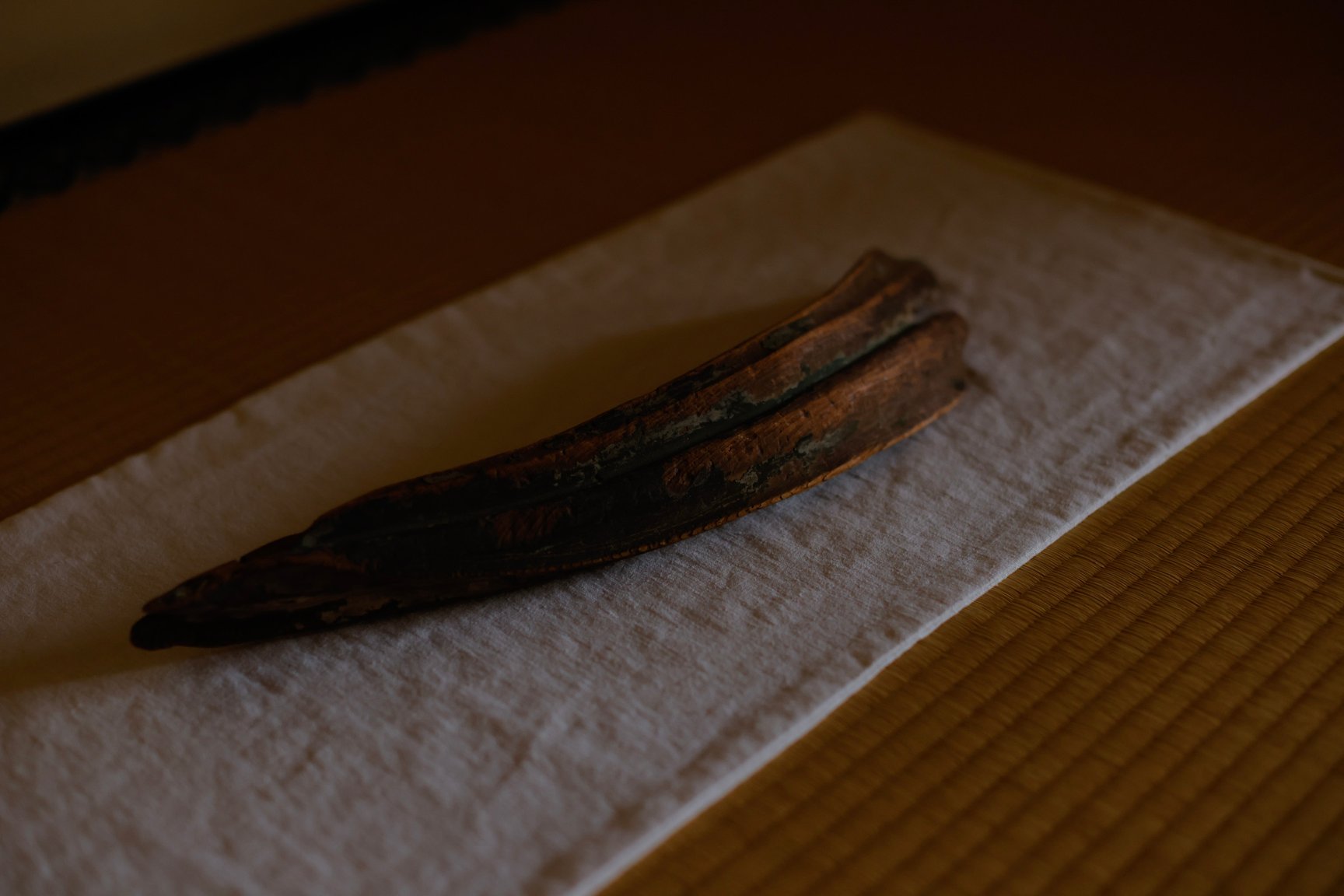 同展は、庭園周辺と寺院の2つの間を使い、禅宗の寺院で御本尊を安置する「方丈の間」に主要な作品を公開。髙橋は10代の頃から服や古美術品を収集してきたそうで、その数は約2000点に及ぶ。「方丈の間」北側に位置する「大書院」には、髙橋の思考を巡るべく髙橋自身が蒐集した秋篠寺仏像の衣紋および当麻寺(612年建立)木造建築の残片を髙橋の言葉とともに展示している。
