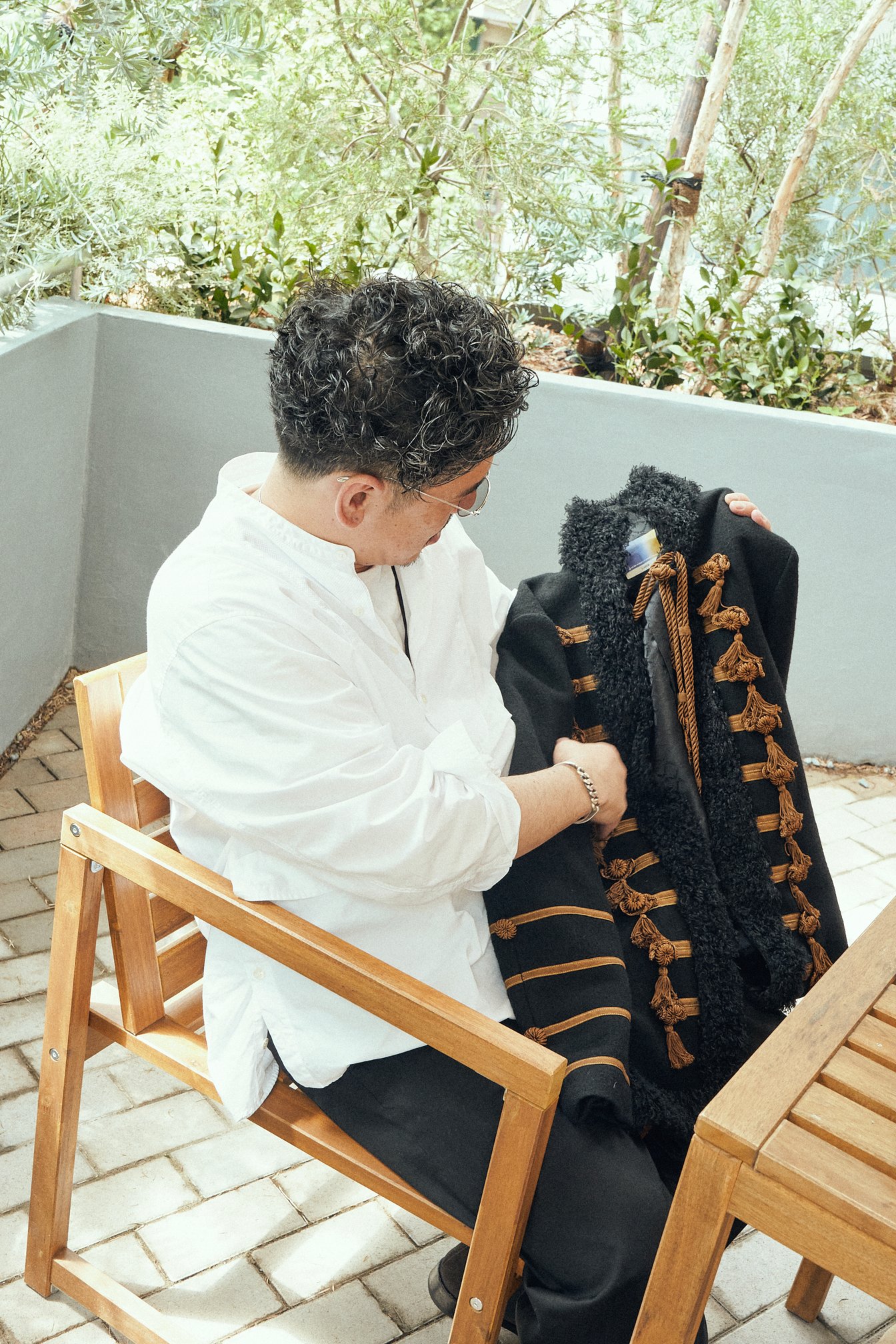 今日その初期のナポレオンジャケットを持ってきたんです。僕が大切にしていたもので、本当はこれを着て師匠を待とうと思ったんですけど、暑くて・・・。