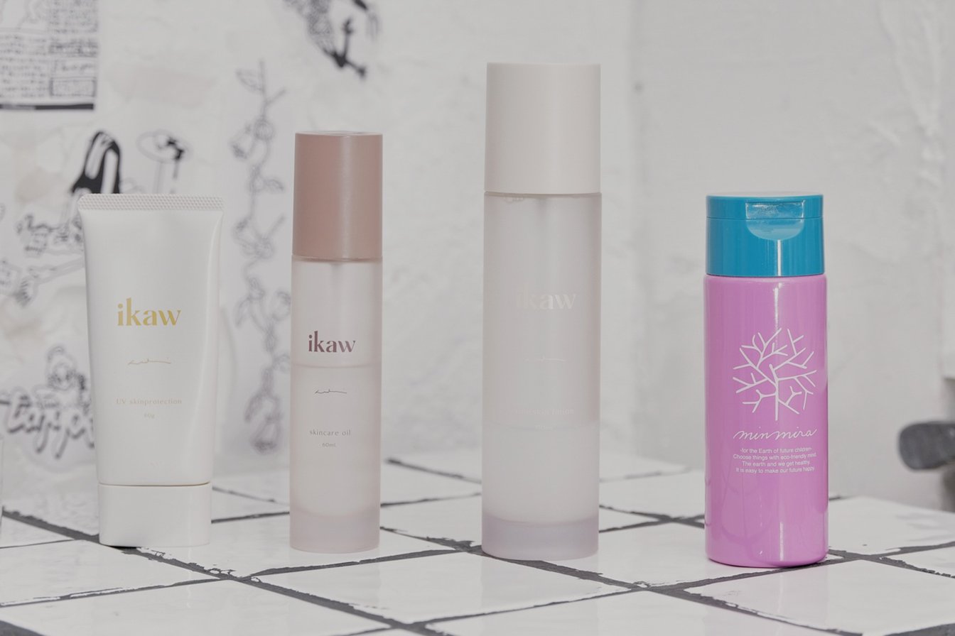 左から ikaw UV skinprotection(60g 4840円)、ikaw skincare oil(60mL 6600円)、ikaw yourskin lotion(150mL 5280円)、みんなでみらいを 洗顔クレンジングパウダーS(70g 2750円)※価格は全て編集部調べ