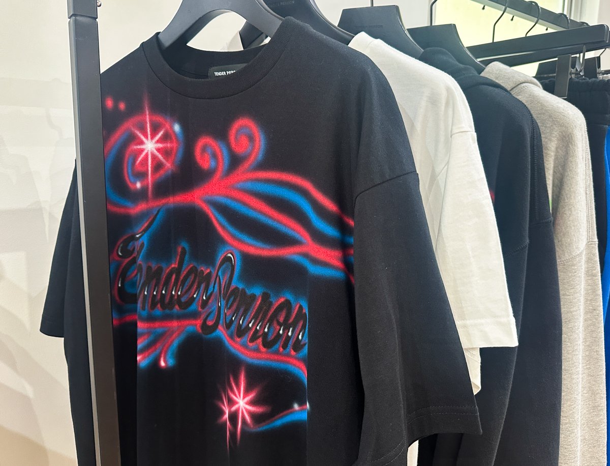 同コレクションを経てヤシゲは「一緒にものづくりをしてくれる人たちにも、買ってくれる人、着てくれる人にも喜ばれるものを作りたい気持ちが強くなりました」という。以前は売り上げの2/3が海外で、中国や韓国、マレーシア、イタリア、カナダなど欧米にも進出していたが、新体制ではスケジュールの関係で一度リセット。最後に目標を聞いてみると、「また一から、日本も含めてファンを増やしていきたいです。今はフレームモチーフなど、ロゴとかヴィジュアル的なアイコンがいくつかありますが、今後はテーラードジャケットだったり、もっと服そのもののデザインとして、テンダーパーソンらしいものを作り上げていきたいです」とコメント。さらに「もう一つは、G-DRAGONに着てもらいたい。あれだけ自分のスタイルを貫いて、影響力を持っている人ってなかなかいないですよね。自分にとってはリアーナもそうですけど。そういう人にも着てもらえるような、イケてるものを作っていきたいです」と語った。
