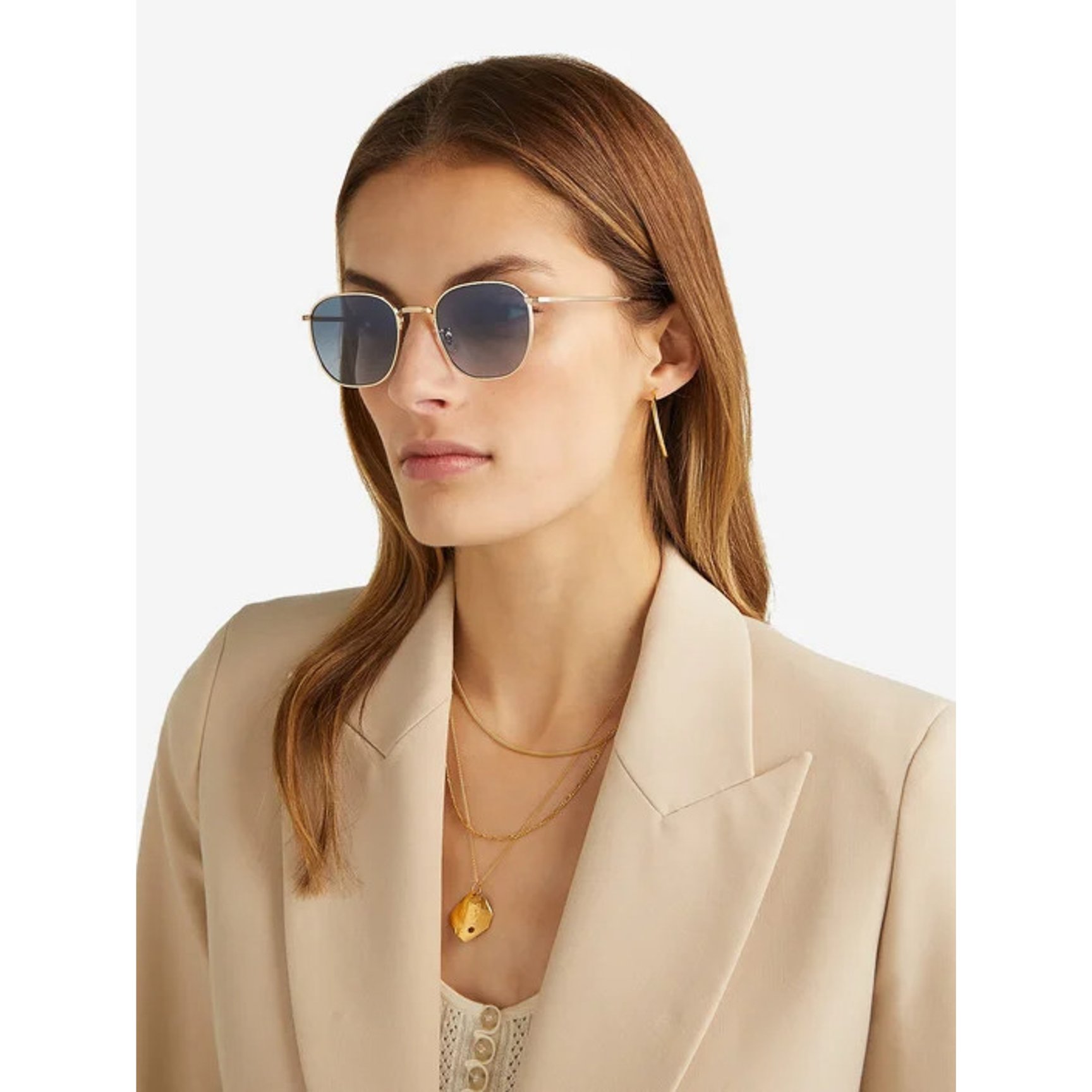 LA発のアイウェアブランド「オリバーピープルズ(Oliver Peoples)」とのコラボレーションサングラス。スクエアフレーム、細身のゴールドテンプル、ブルーグラデーションレンズと、計算された組み合わせとシックなデザインに洒落感が宿ります。
