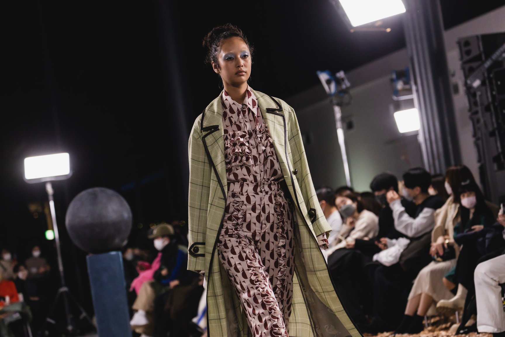 また会場となった東京国際クルーズターミナルは、昨年9月に新たな首都の玄関口としてオープンし、開業直後には「ルイ・ヴィトン(LOUIS VUITTON)」がヴァージル・アブロー(Virgil Abloh)率いるメンズの21年春夏ショーを行った場所。「東京らしい場所を探し、半年前からここでショーを行うことを決めていたが、ヴァージル(11月に逝去)がショーを開催した地で、開くことができたのは感慨深い」と岩田デザイナーは明かした。