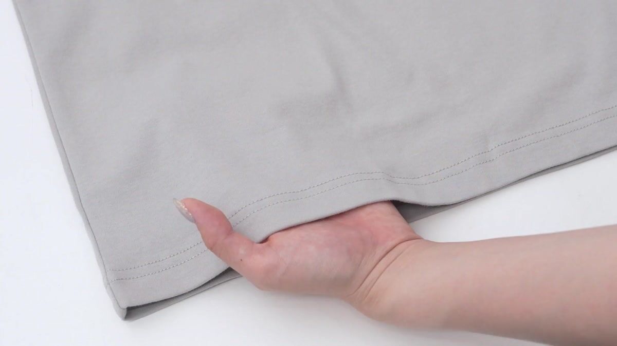 袖口は固定の折り返しデザインになっており、着るだけでこなれ感が出るのがうれしいポイント。カジュアルなクルーネックタイプなので、首元のアクセサリーとも相性抜群です。特に暑い季節に気になる首回りのべたつきも少なく、快適に過ごせる設計になっています。ソフトな生地感ですが、透けを心配する必要はなさそうでした。