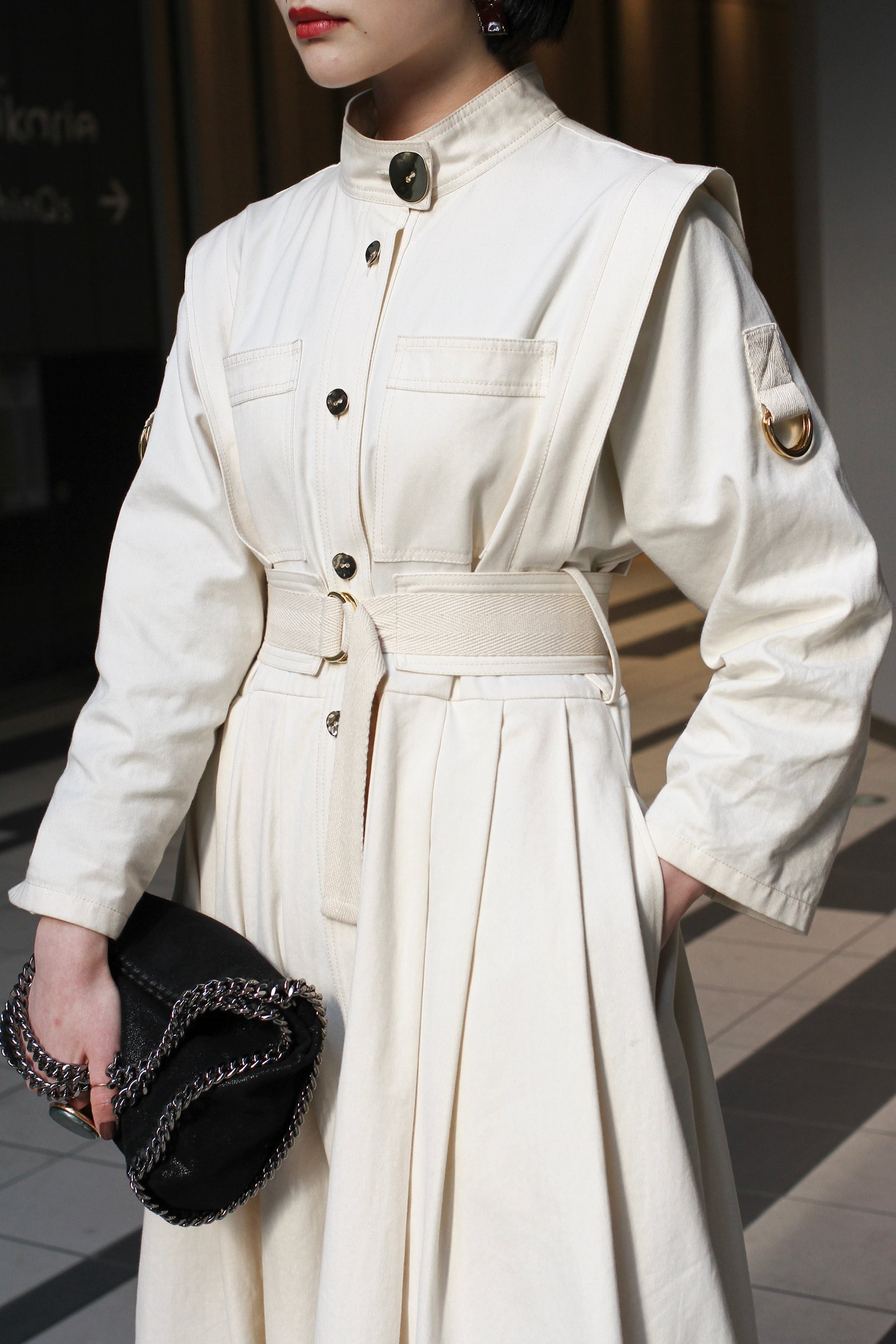<p class="box grey column large-centered">《<a href="https://www.instagram.com/___royal/">保坂 万里央</a>》<br />ワンピース: WALK OF SHAME<br />バッグ: STELLA McCARTNEY<br />シューズ: CELINE</p>