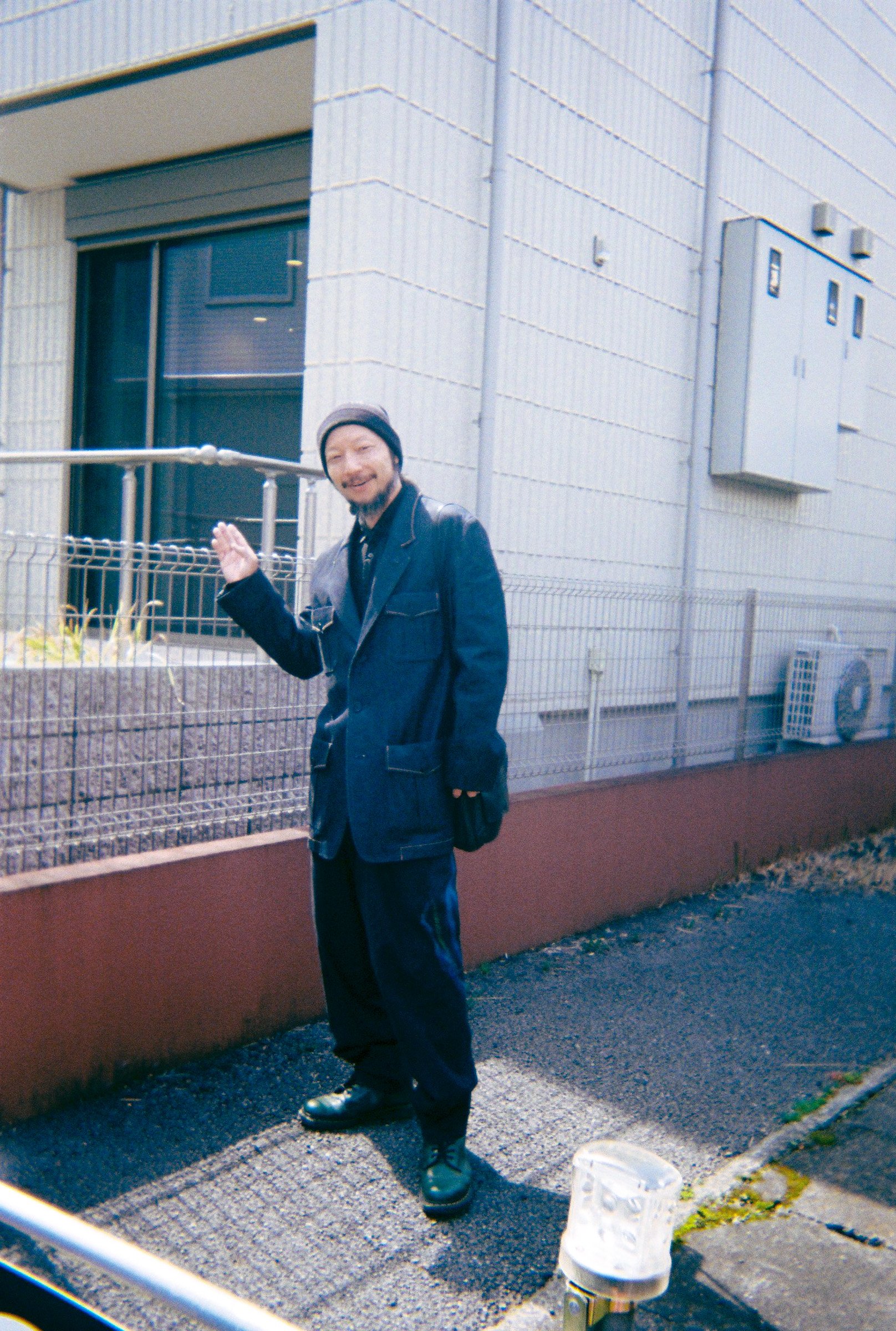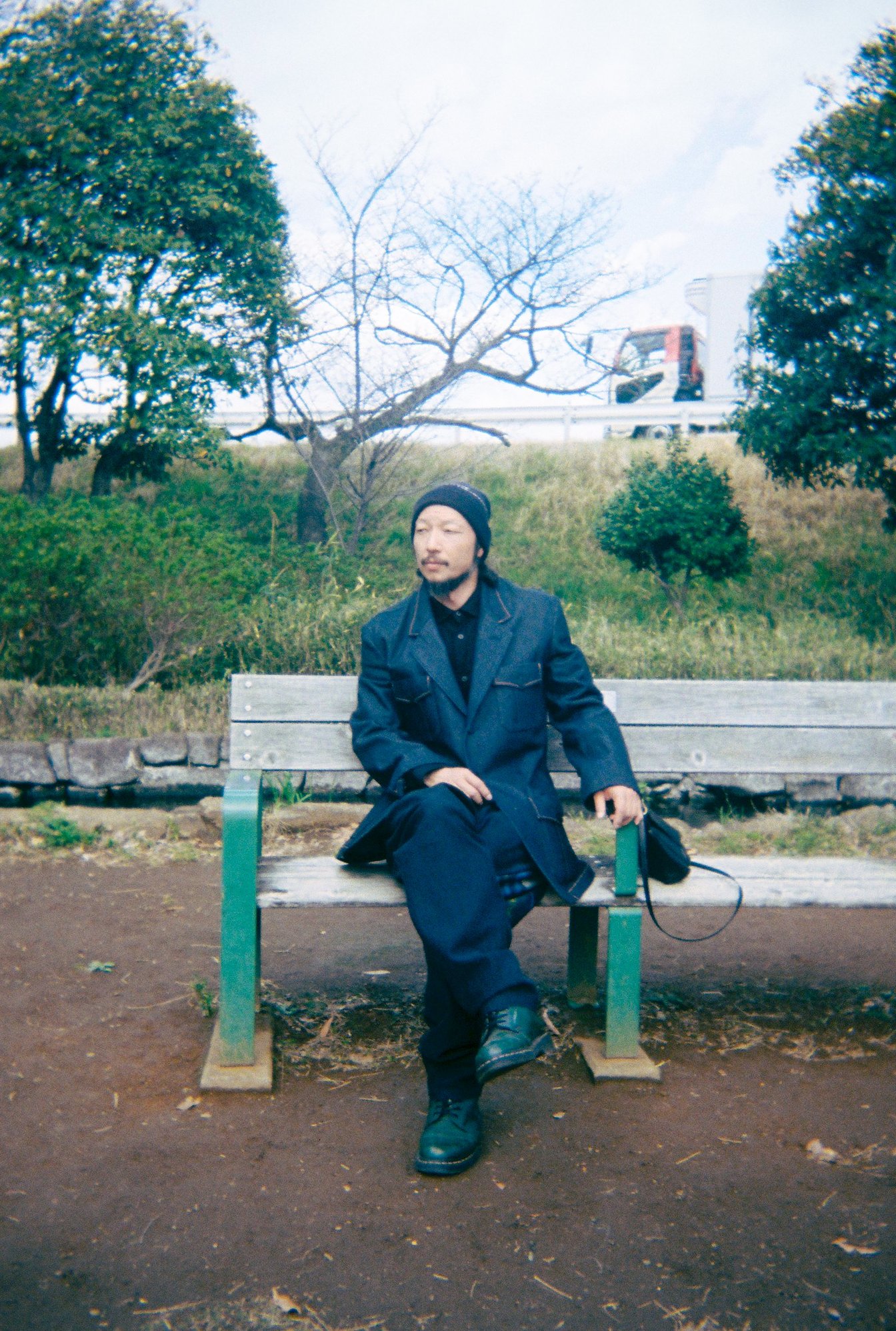 この日の私服は、ビーニーが「Ground Y」、ジャケットとパンツが「Yohji Yamamoto POUR HOMME」、シャツが「IM MEN」、シューズが「Dr.Martens」。