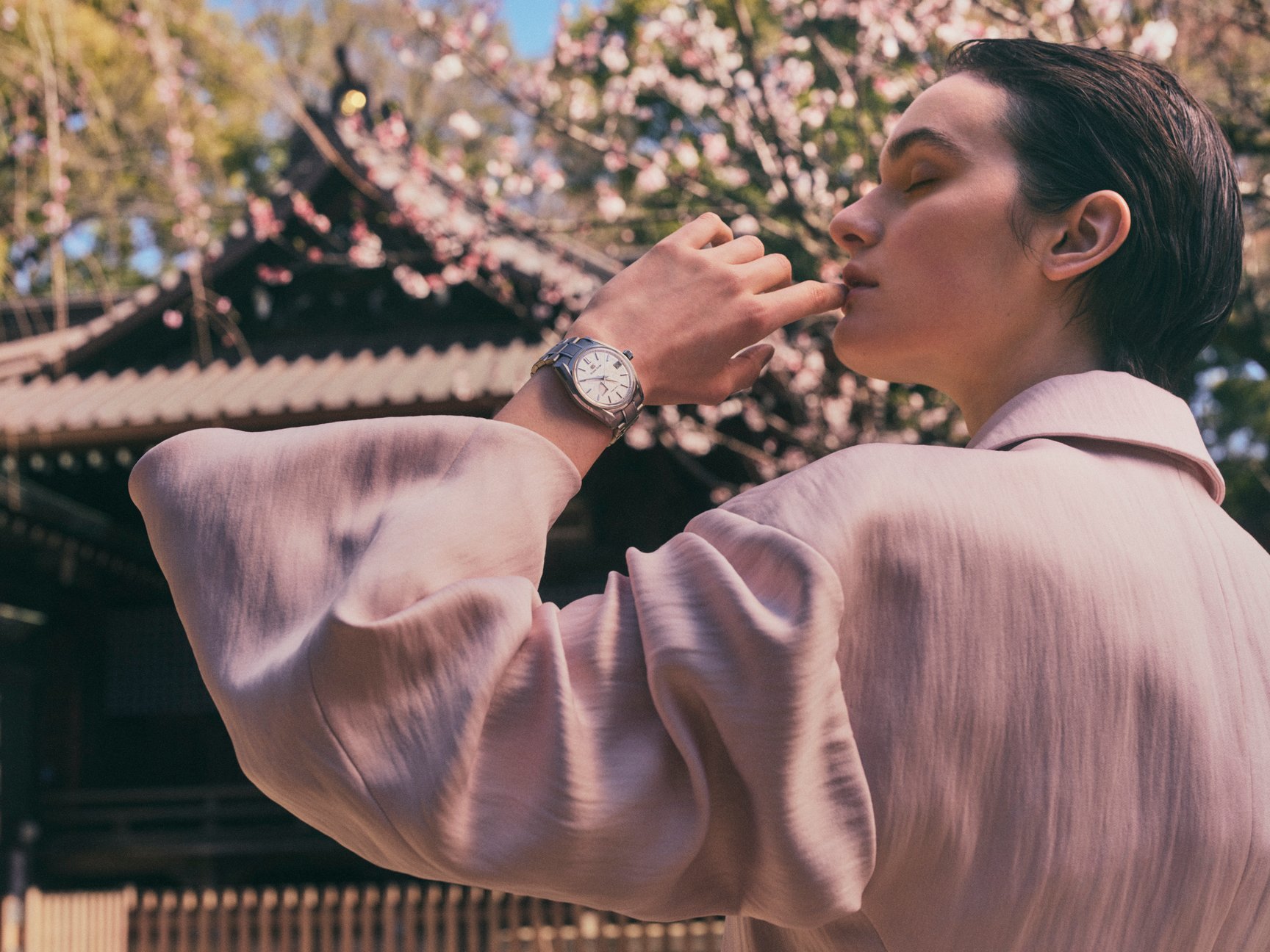 伝統と革新の美学、日本の美意識、クラフトマンシップ、それらを象徴する名建築、情緒を感じる人々の生活の痕跡——「TOKYO TIME Grand Seiko」では、そんな要素が息づく東京を舞台に、世界的な写真家 ジョシュ・オリンズが街ごとに異なる東京の「時」の流れをモードかつファッショナブルに切り取っている。