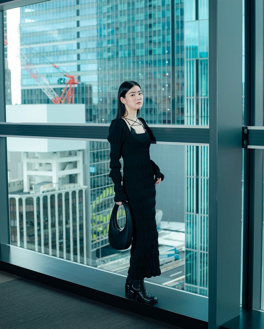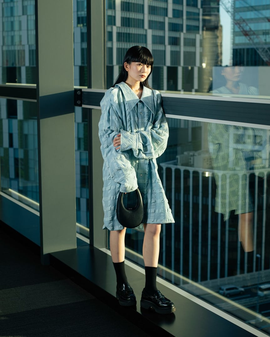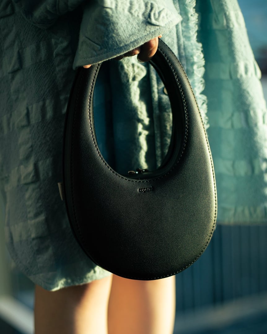 東京のストリートでは、ANDAMファッションアワードやLVMHプライズのファイナリストに選出されるなど注目の気鋭ブランド「コペルニ(COPERNI)」のアイコン「スワイプバッグ」を使った着こなしが多く見られました。iPhoneのオン・オフを切り替えるスワイプボタンから着想した丸みを帯びた独特のフォルムと、コーディネートを邪魔しないシンプルなデザインが人気の理由。インパクトが強い「ベースマーク(BASEMARK)」のシャツ、シックな印象の「フェティコ(FETICO)」のワンピースとも相性の良いスワイプバッグ、その汎用性の高さからおしゃれ女子の新定番として人気を集めています。
