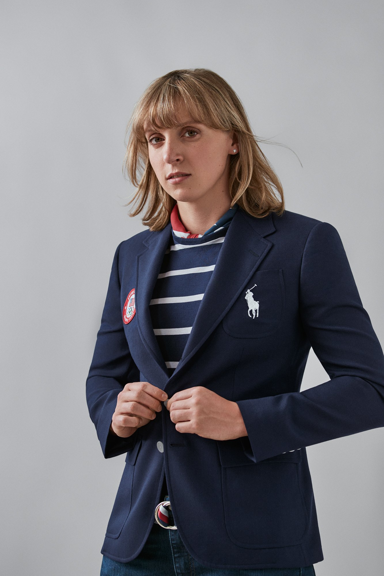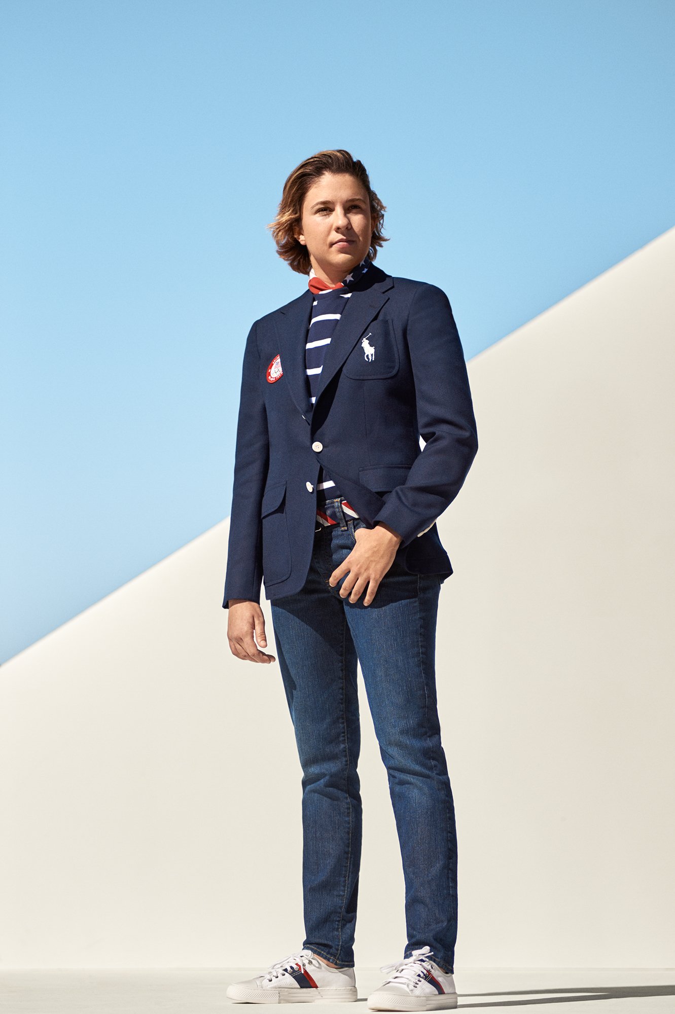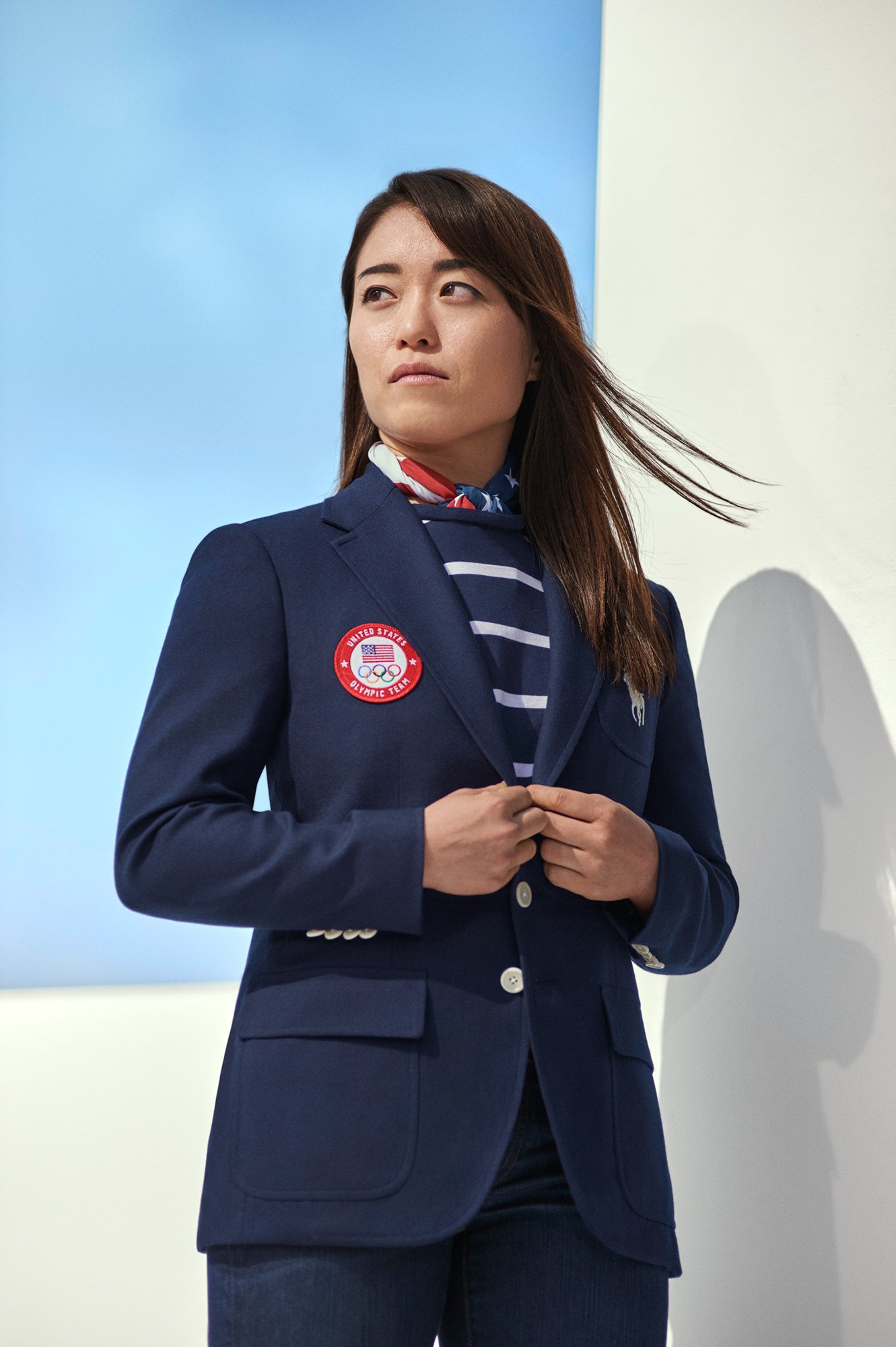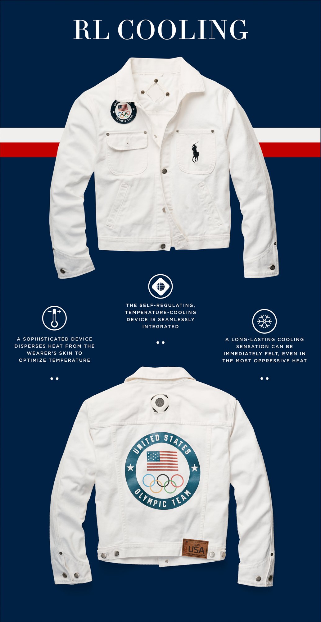 開会式のユニフォームは2008年以来オリンピックとパラリンピックで公式ユニフォームを提供している「ラルフ・ローレン(Ralph Lauren)」が手掛けました。デザインはクラシックなオールアメリカンルックを基調に、各パーツにサステナブル素材を採用。米国産ウールを使用したネイビーのブレザーをはじめ、ストライプTシャツやプリントスカーフ、シューズ、マスク、ストライプベルト、スリムデニムパンツなどを製作しました。また、旗手が着用するウェアには東京の暑さを考慮してチームUSA専用に開発した最先端のウェアラブルテクノロジー「RL クーリング」を搭載。自己調整型の温度冷却装置で、温度状況をモニターして最適化する高度なデバイスによって、着用者の肌から熱を放出するそうです。