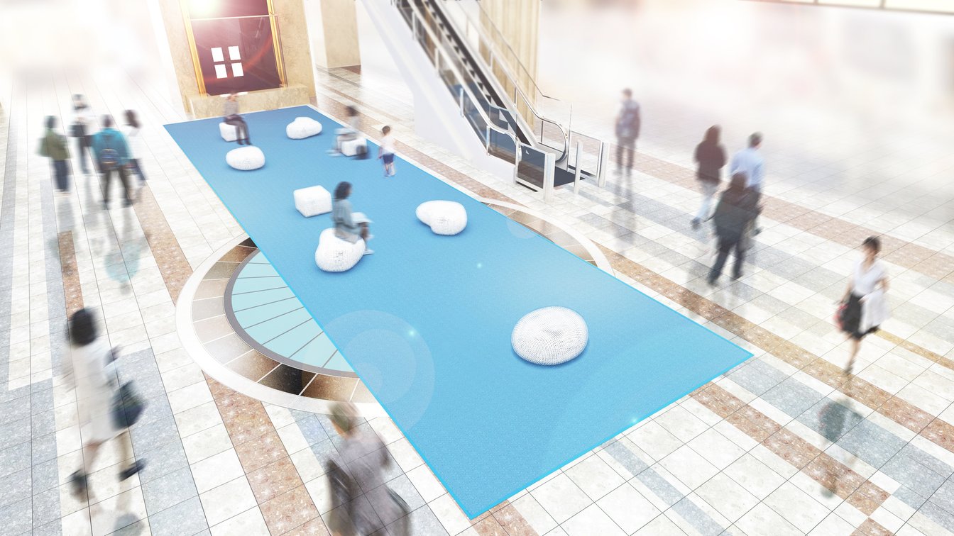 日本の「空」の玄関口である羽田空港を拠点とする羽田エリアは、今回で3回目の参画。「HANEDA SKY」をテーマに展示やワークショップ、交流型サロンを実施します。羽田空港第1ターミナル2階マーケットプレイスでは、クリエイティブ集団「130」が制作を手掛ける「座れる雲(Cirrocumulus)」をイメージしたスツールを展示。再利用可能なPET素材を使用し、一本のフレームを立体的に構築することで持続可能性と雲の儚い美しさを表現します。
