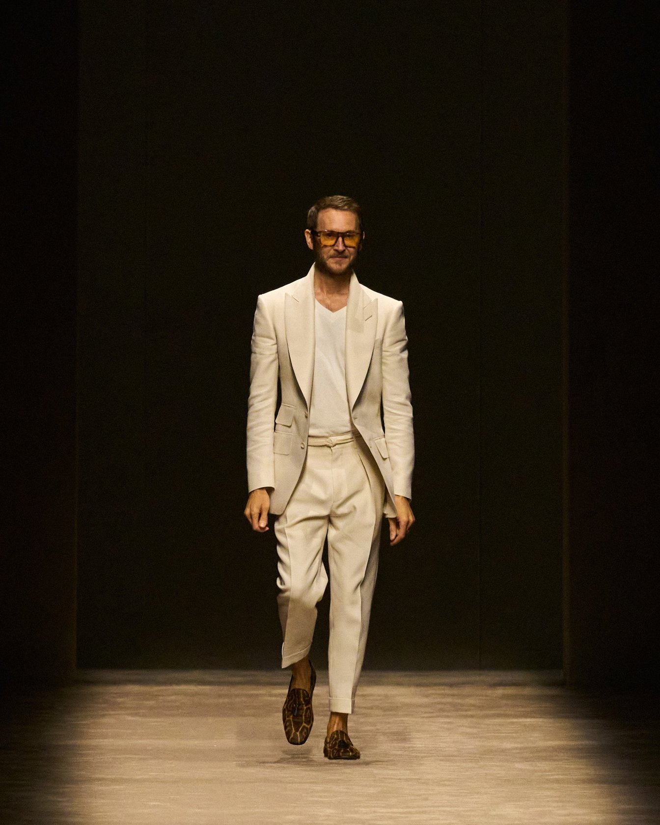 ホーキングスは、1988年にトム・フォードが率いていた「グッチ」でキャリアをスタート。2006年にはトム フォードのブランド立ち上げに携わり、近年はメンズ部門でシニア バイス プレジデントを務めていた。2023年4月にフォードの後任としてクリエイティブディレクターに就任後は、メンズウェア・ウィメンズウェア・アクセサリーのクリエイティブディレクションおよびファッションショーのリードデザインを手掛けている。トム・フォードとは25年来の付き合いで、これまでメンズウェアのみをデザインしてきたが、今回陣頭指揮を取るにあたり、裾野をウィメンズにまで広げた。