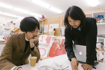 山縣:チーム編成とか、なんかいいんですよね。河野さんがいて、僕がいて、ジュエリーはコウタ オクダ(KOTA OKUDA)にお願いしたり、ここのがっこうで講師をやっている川澄君や学生も関わったりと短期間で仲間がどんどん増えていったんですよ。飄々としていていつの間にかいろんな人を巻き込んでいけるのはすごいなと思いましたね。